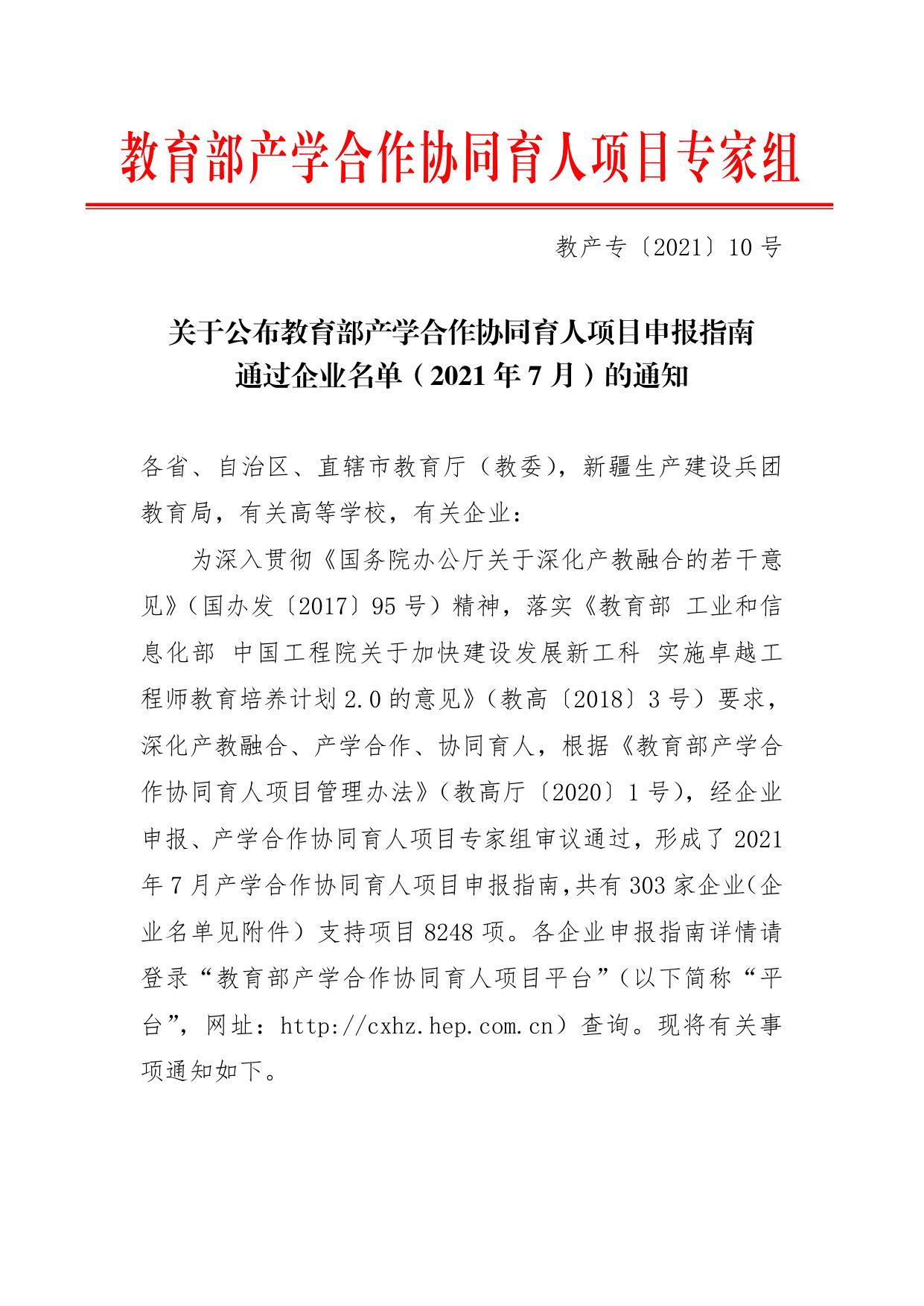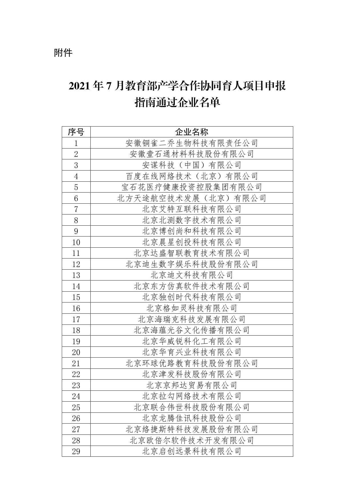 附件1:关于公布教育部产学合作协同育人项目申报指南通过企业名单(2021年7月)的通知.pdf
