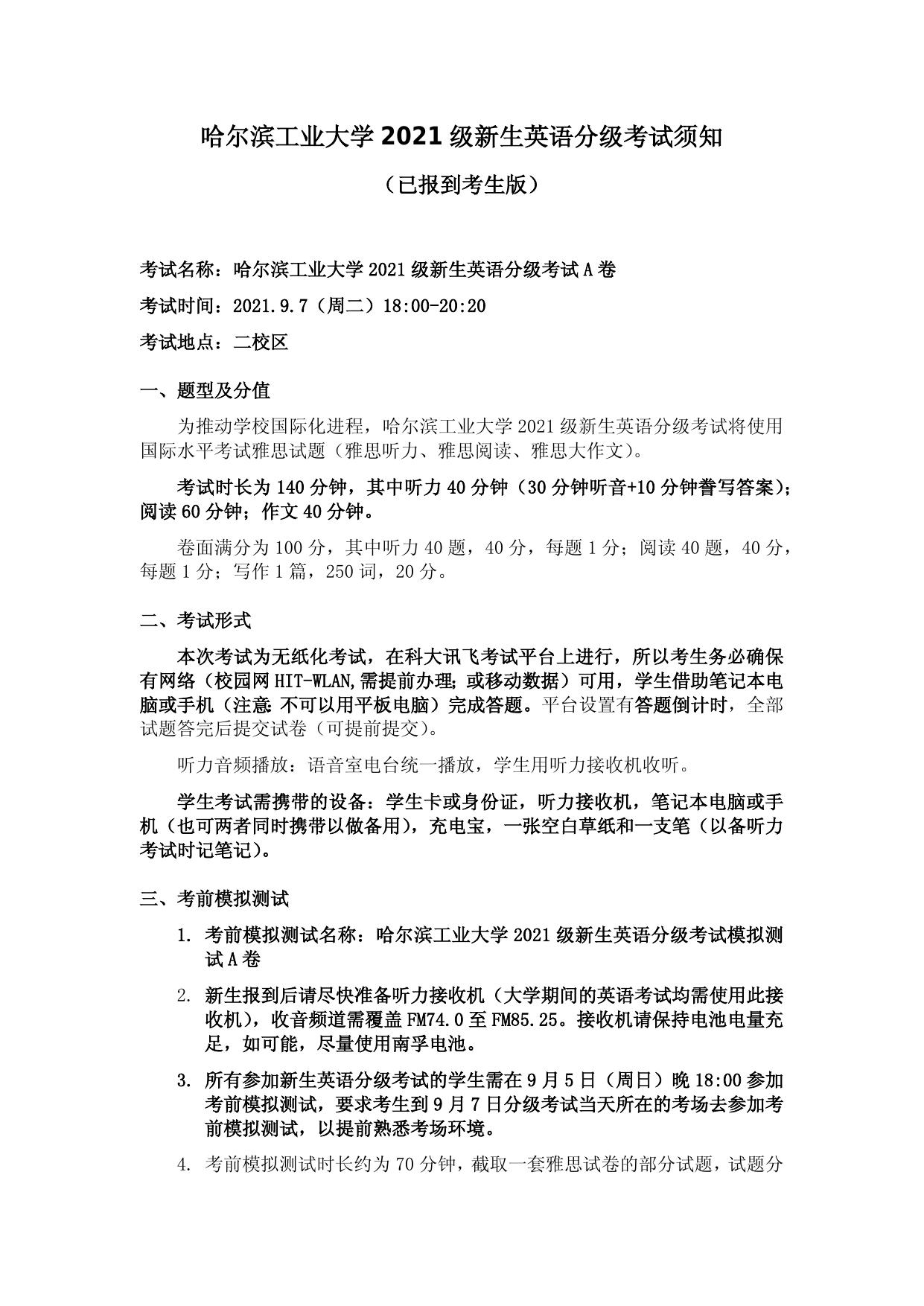 2021级新生英语分级考试须知(已报到考生版)8.29.docx