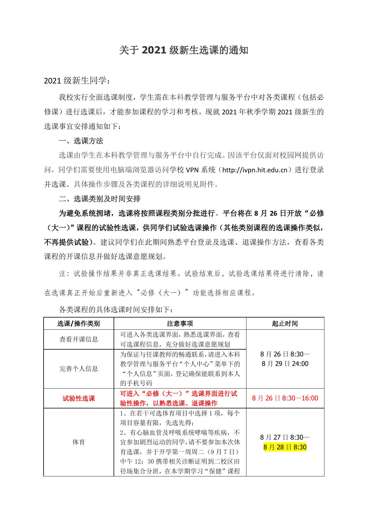 关于2021级本科新生选课的通知(通知原文及附件).pdf