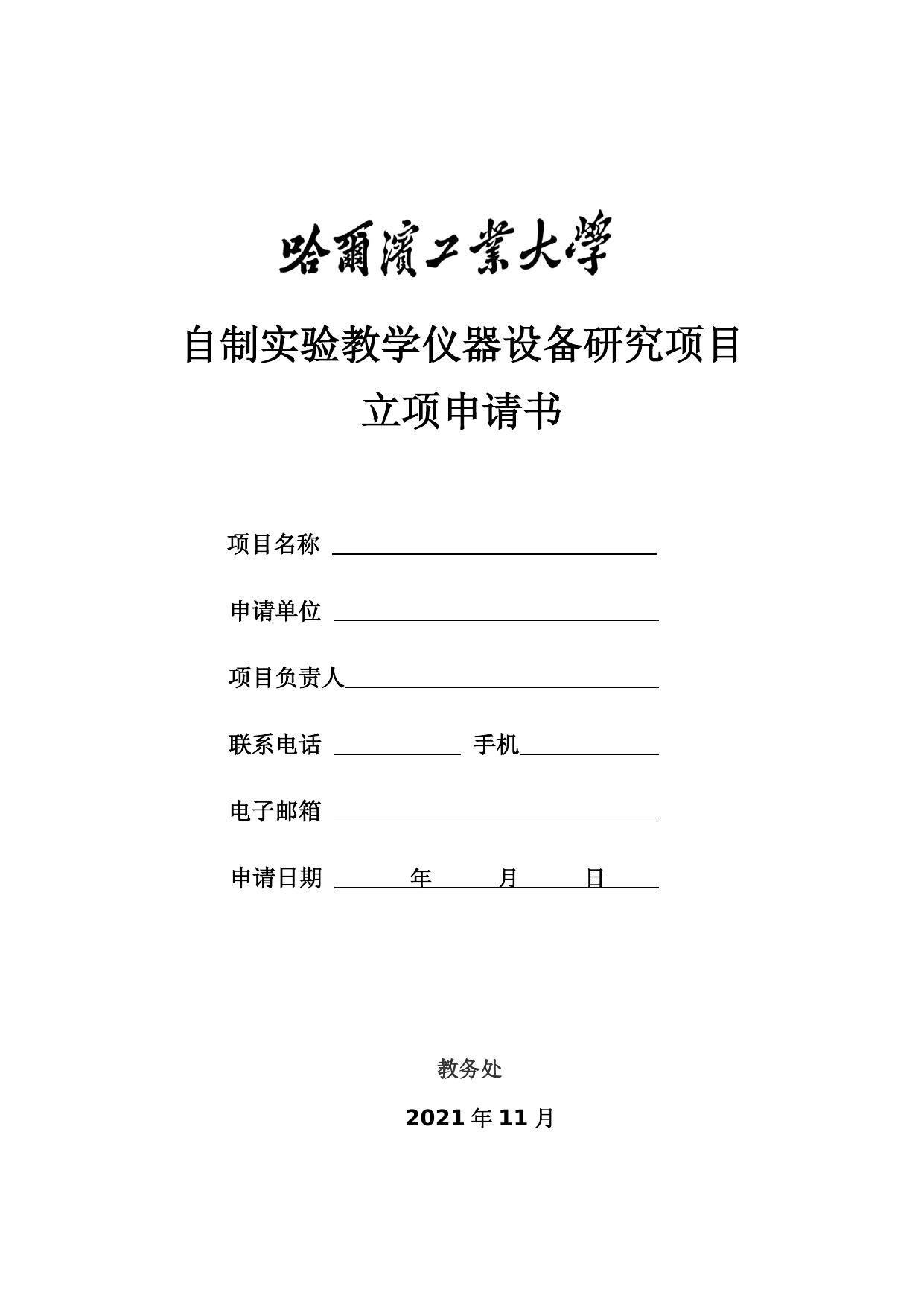 附件1:哈尔滨工业大学自制实验教学仪器设备研究项目立项申请书.docx