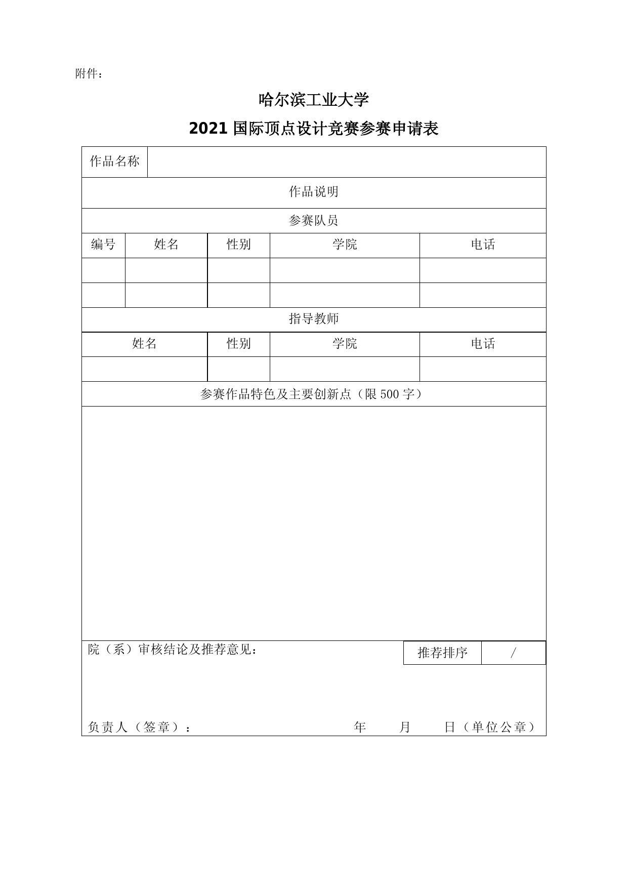 哈尔滨工业大学2021年国际顶点设计竞赛参赛申请表.docx