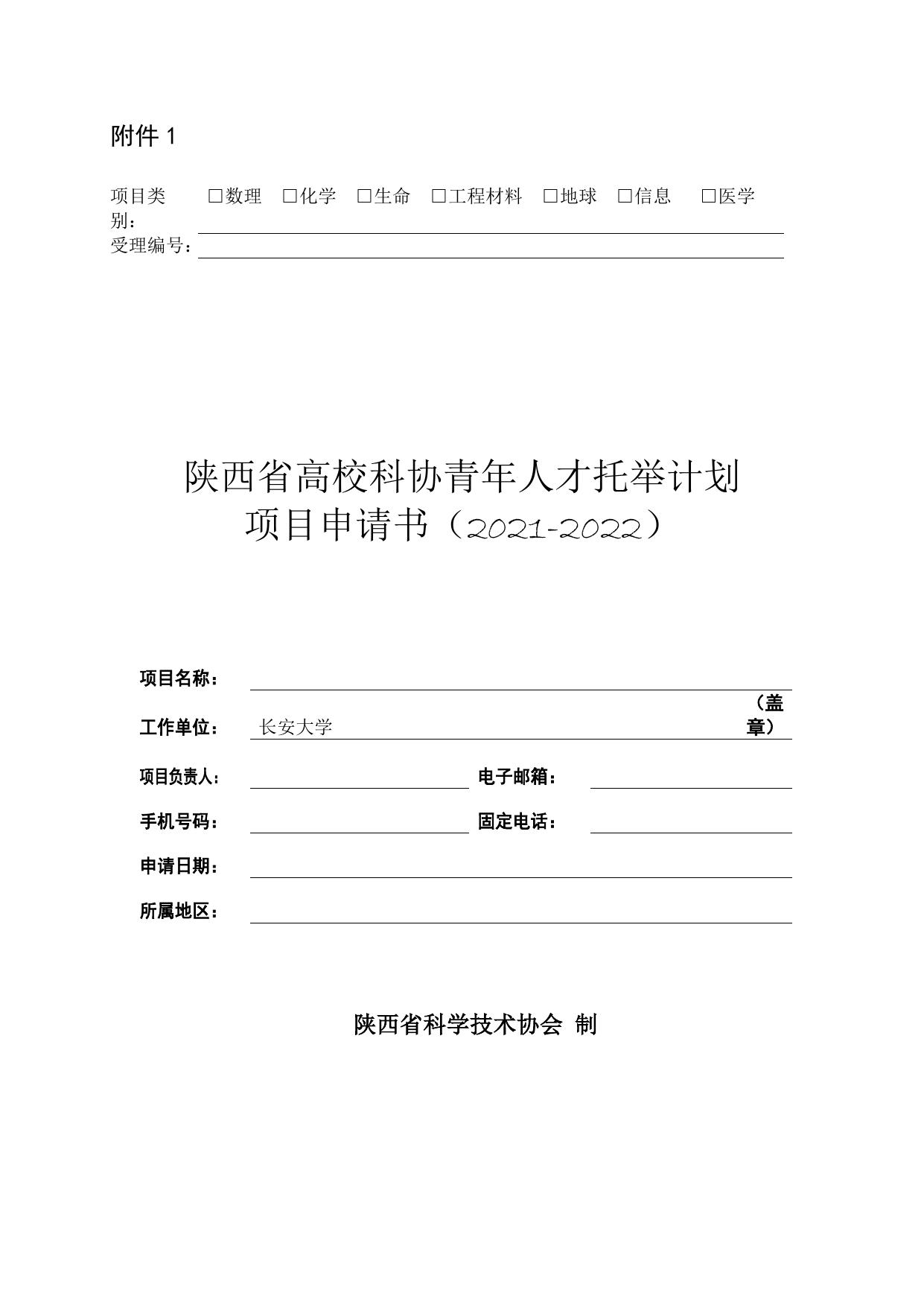 长安大学公路学院附件1 陕西省高校科协青年人才托举计划项目申请书.docx