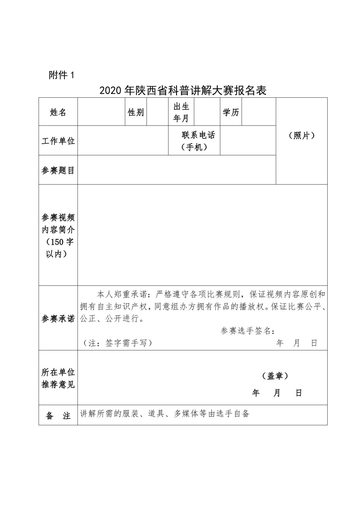 长安大学公路学院2020年陕西省科普讲解大赛报名表.doc