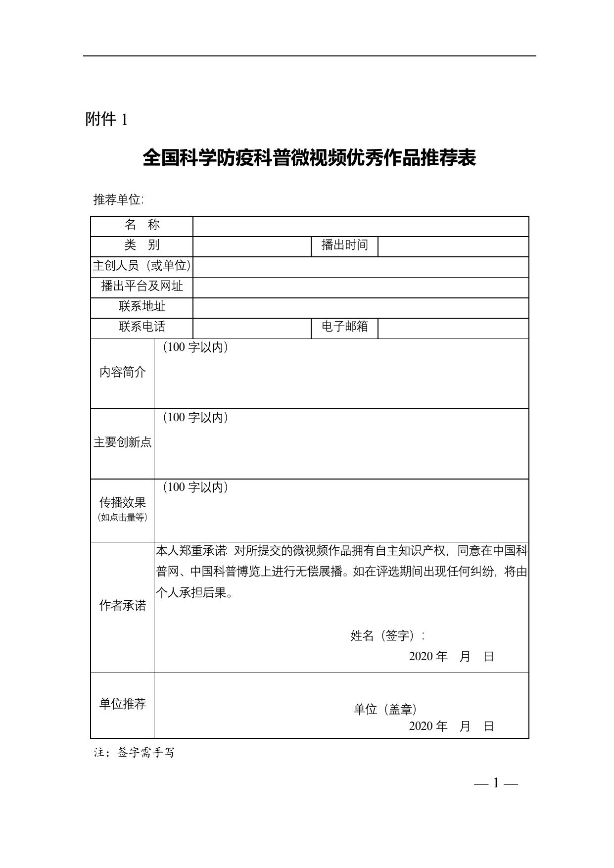 长安大学公路学院全国科学防疫科普微视频优秀作品推荐表.doc