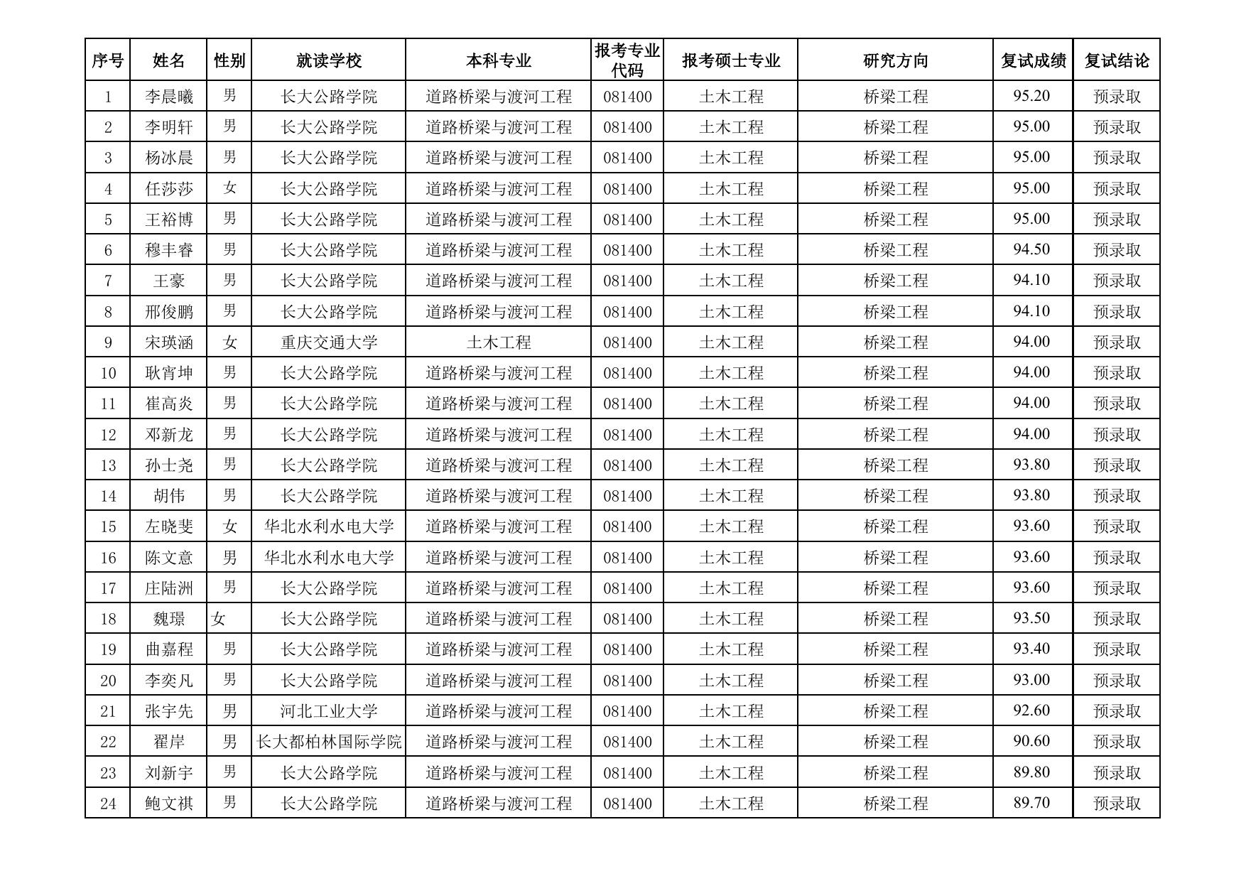 长安大学公路学院公路学院2022年硕士推免生招生预录取名单.pdf
