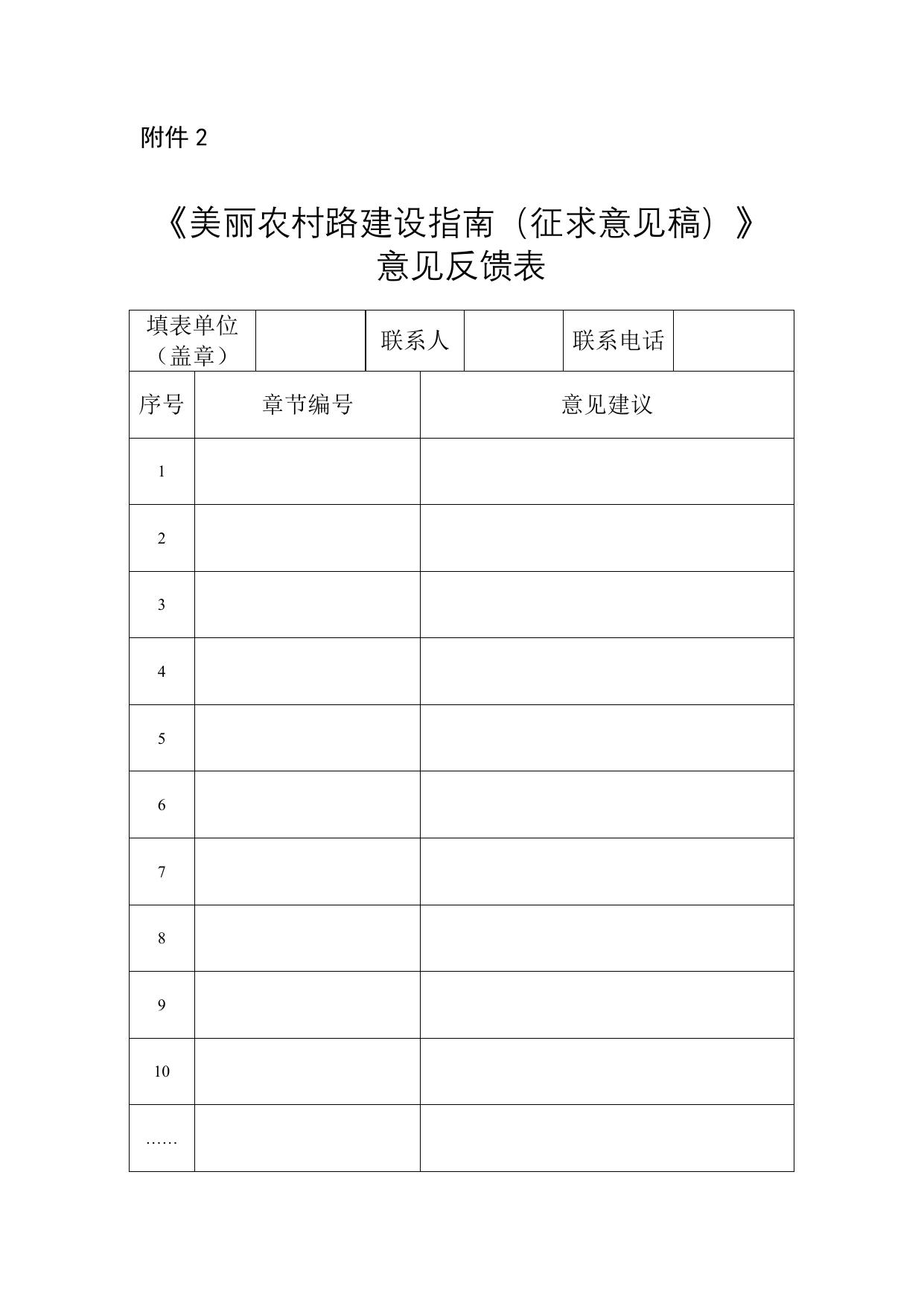 长安大学公路学院附件2《美丽农村路建设指南(征求意见稿)》意见反馈表.docx