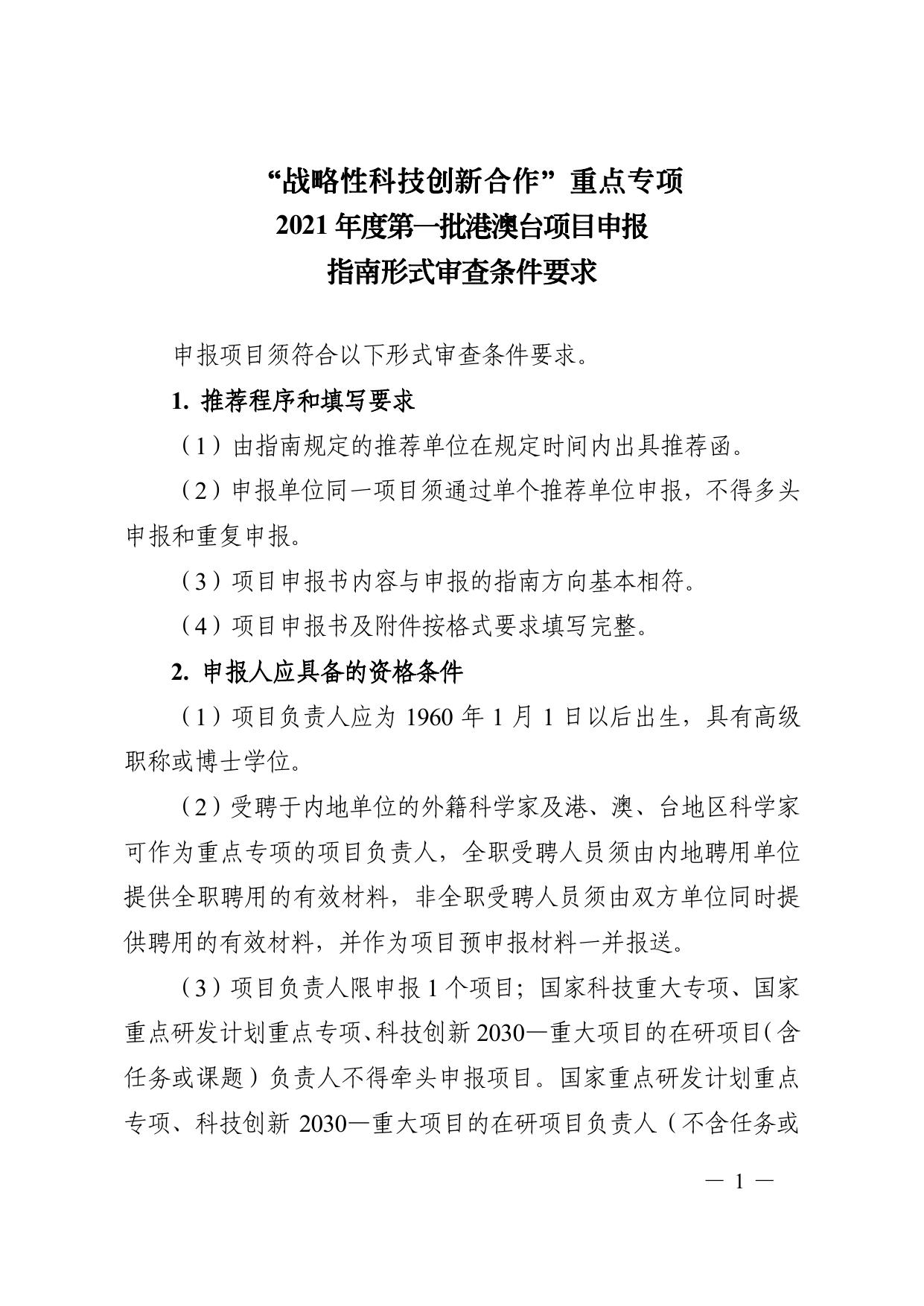 长安大学公路学院“战略性科技创新合作”重点专项2021年度第一批港澳台项目申报指南形式审查条件要求.pdf
