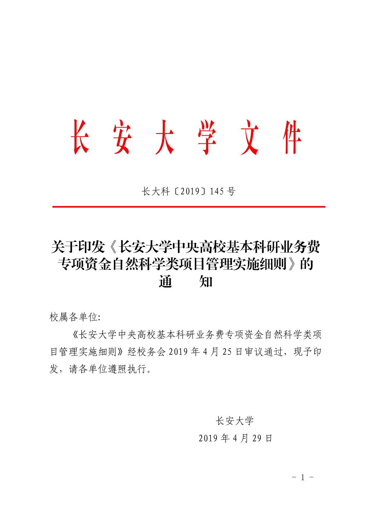 长安大学公路学院附件5:关于印发《长安大学中央高校基本科研业务费专项资金自然科学类项目管理实施细则》的通知.pdf