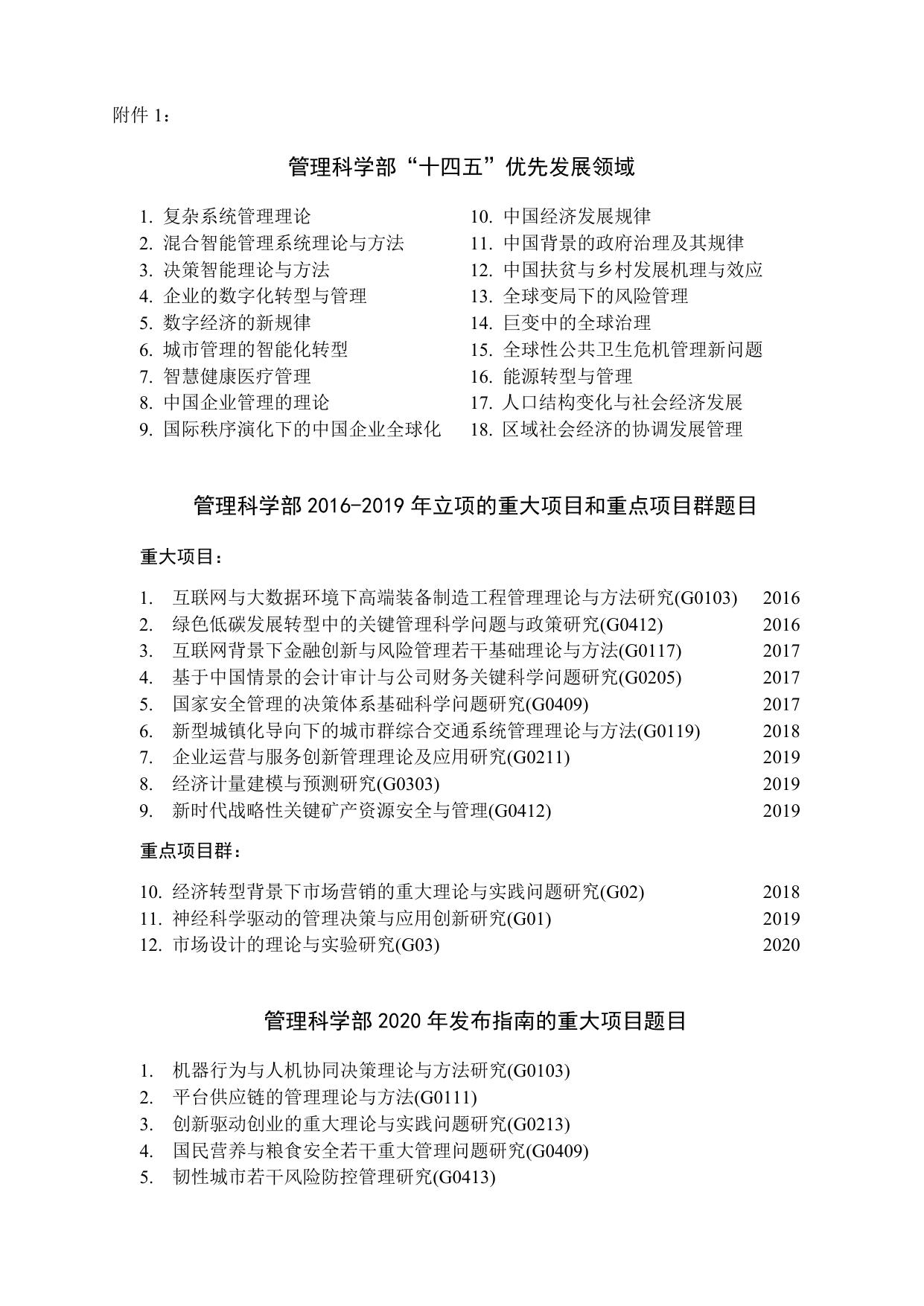 长安大学公路学院附件1:管理科学部“十四五”优先发展领域,近5年已立项和发布的重大项目研究方向.docx
