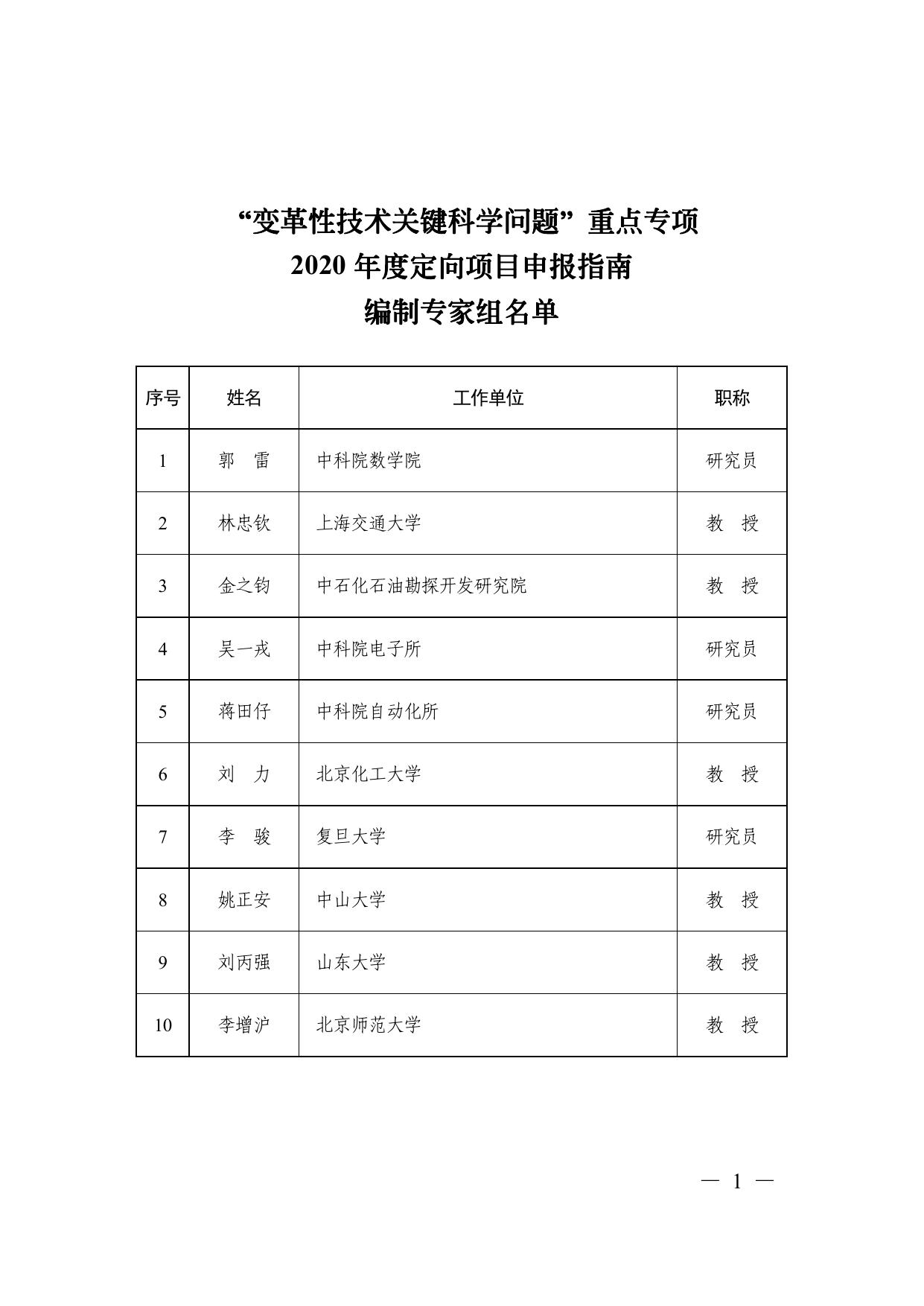 长安大学公路学院“变革性技术关键科学问题”重点专项2020年度定向项目申报指南编制专家组名单.pdf