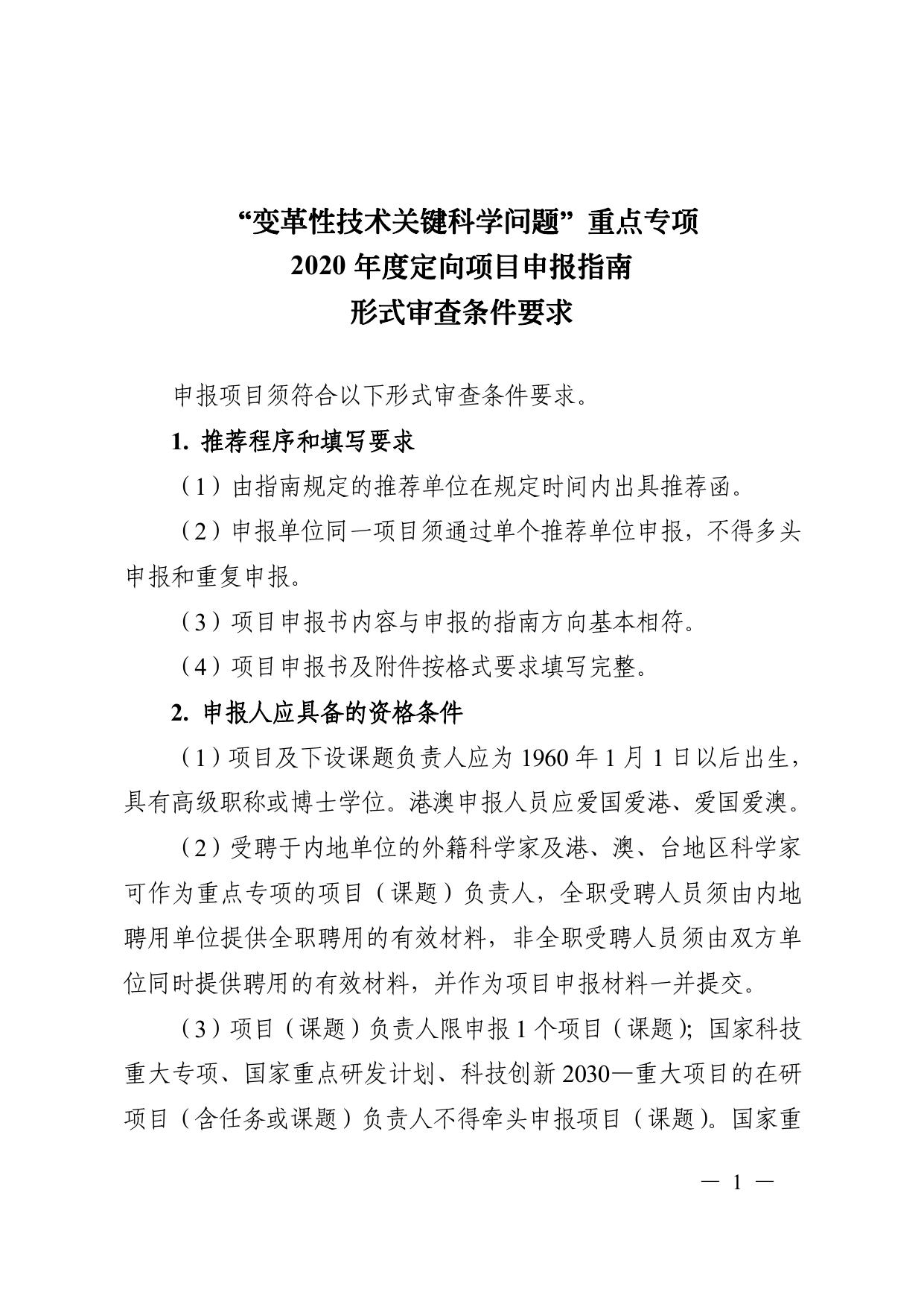 长安大学公路学院“变革性技术关键科学问题”重点专项2020年度定向项目申报指南形式审查条件要求.pdf