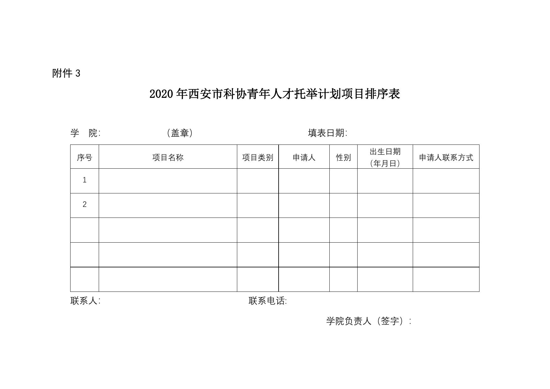 长安大学公路学院附件3:2020年西安市科协青年人才托举计划项目排序表.docx