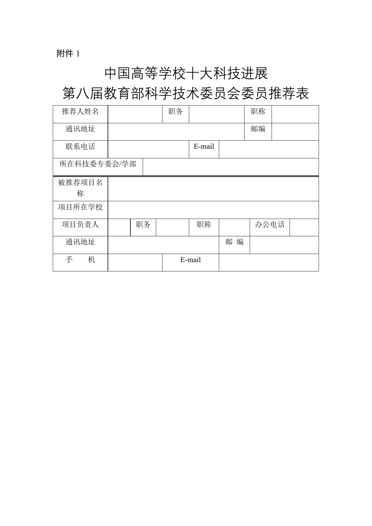 长安大学公路学院附件1中国高等学校十大科技进展第八届教育部科学技术委员会委员推荐表.docx