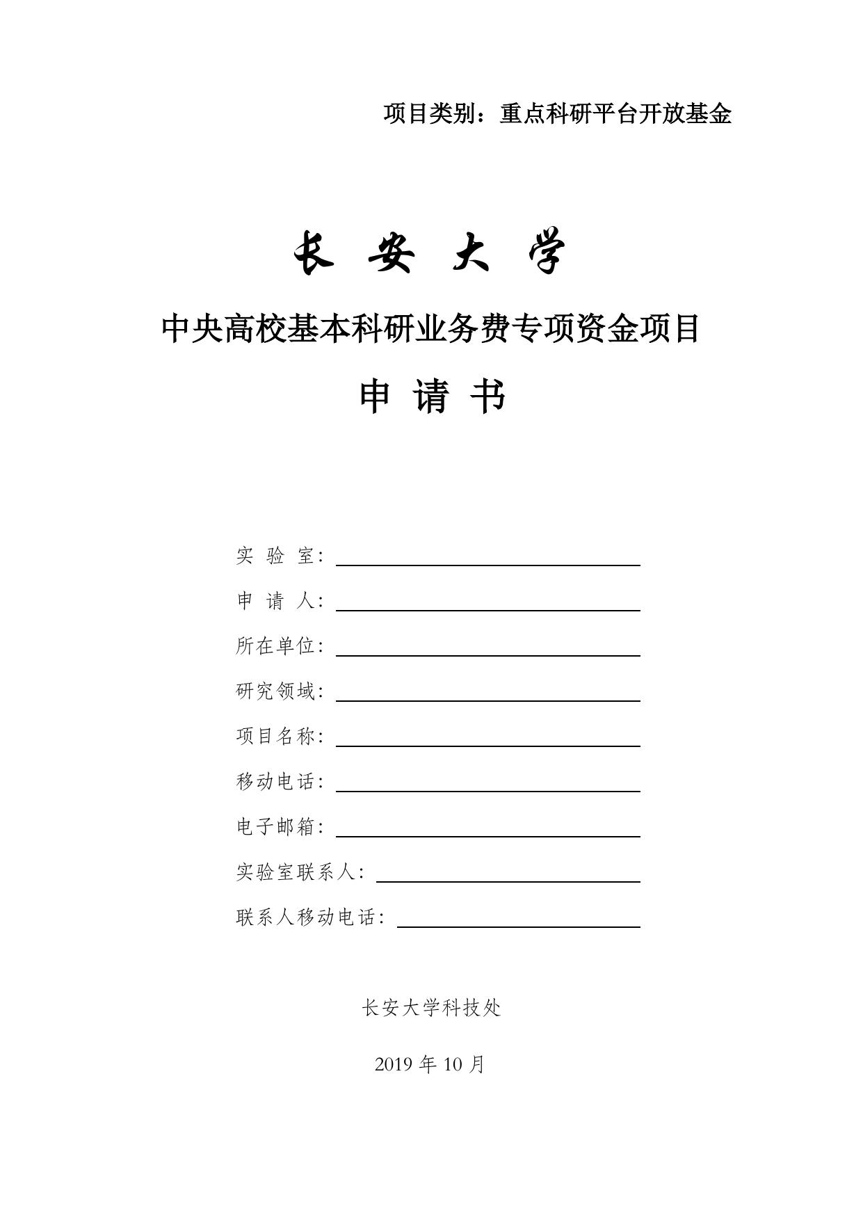 长安大学公路学院附件1:长安大学中央高校基本科研业务费专项资金项目申请书(重点平台开放基金项目).doc
