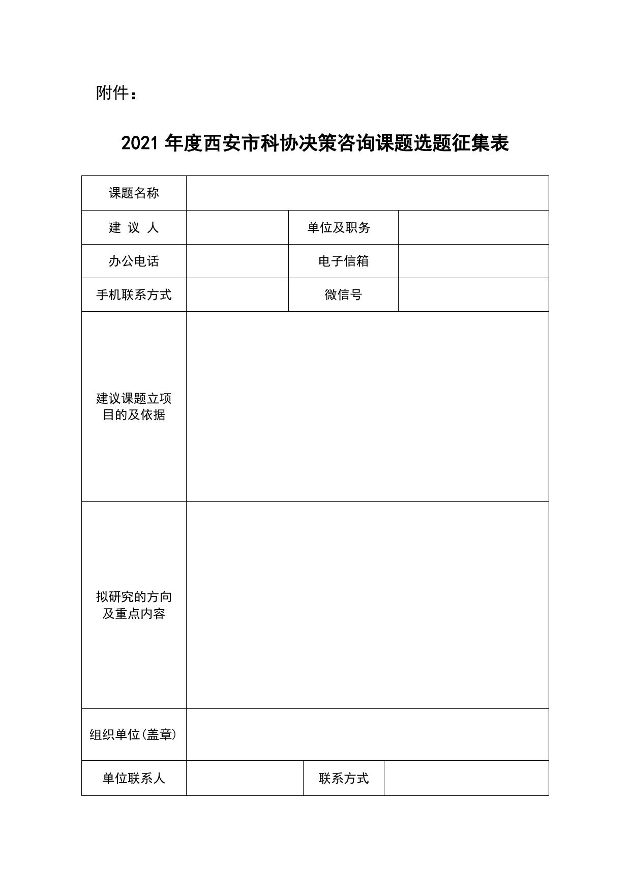 长安大学公路学院2021年度西安市科协决策咨询课题选题征集表.docx