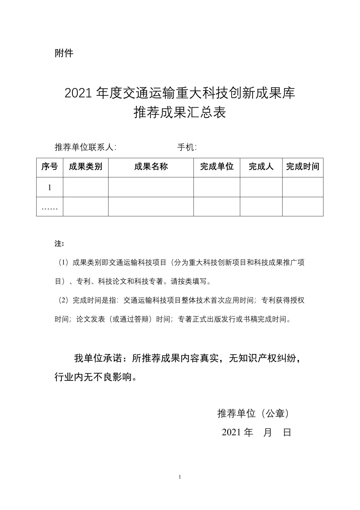 长安大学公路学院2021年度交通运输重大科技创新成果库推荐成果汇总表.doc