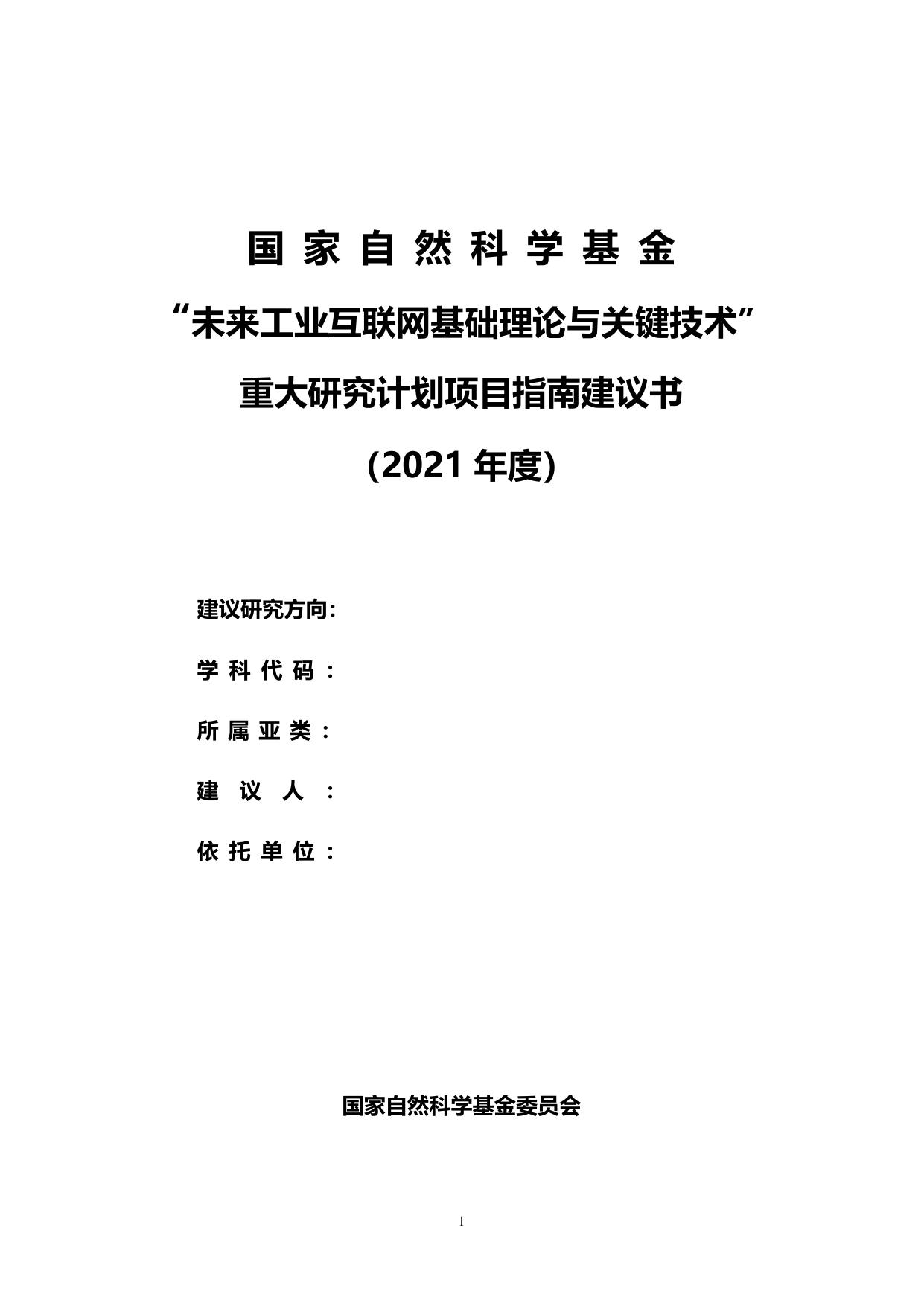 长安大学公路学院附件: 国家自然科学基金“未来工业互联网基础理论与关键技术”重大研究计划项目指南建议书.docx
