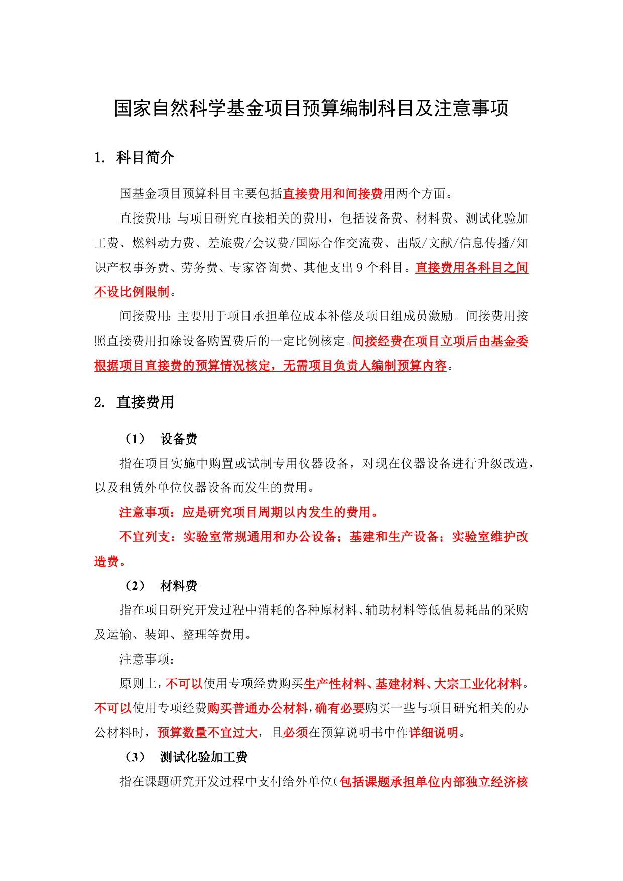 长安大学公路学院附件2:国家自然科学基金项目预算编制科目及注意事项.docx