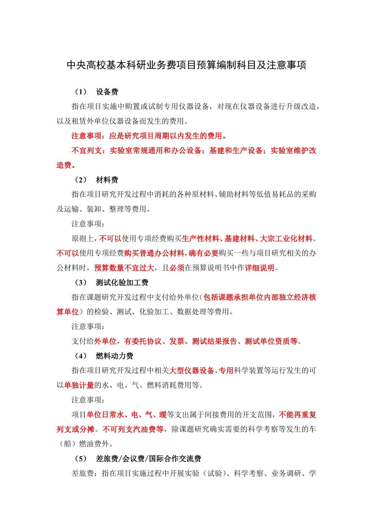 长安大学公路学院附件4:中央高校基本科研业务费项目预算编制科目及注意事项.docx