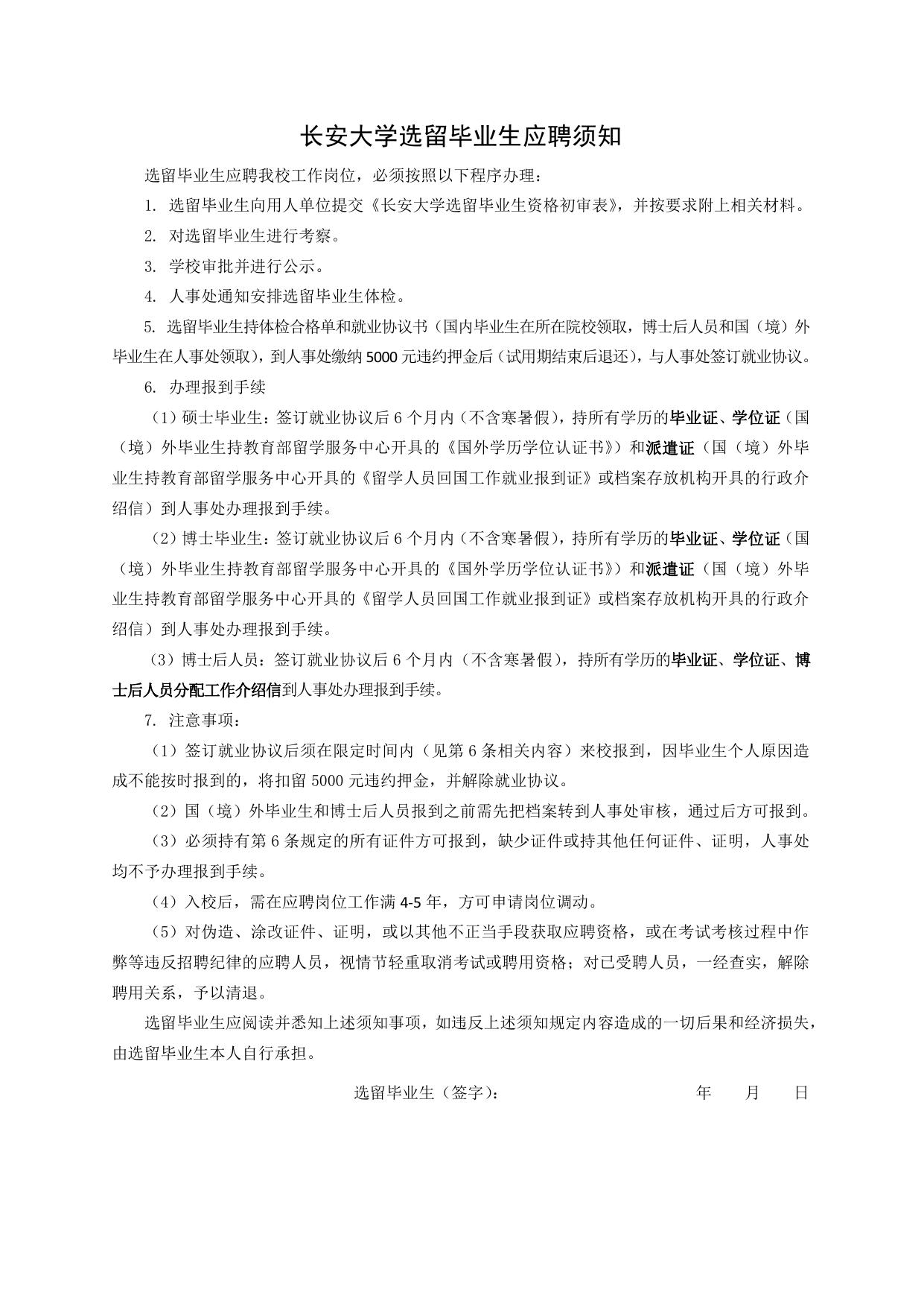 长安大学公路学院长安大学选留毕业生应聘须知及相关表格.pdf