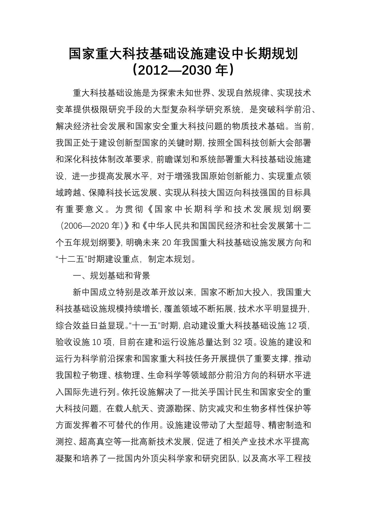 长安大学公路学院附件2:《国家重大科技基础设施建设中长期规划(2012-2030年)》.docx