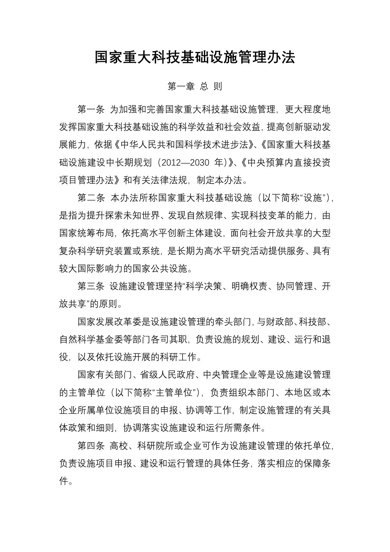 长安大学公路学院附件3:《国家重大科技基础设施管理办法》.docx