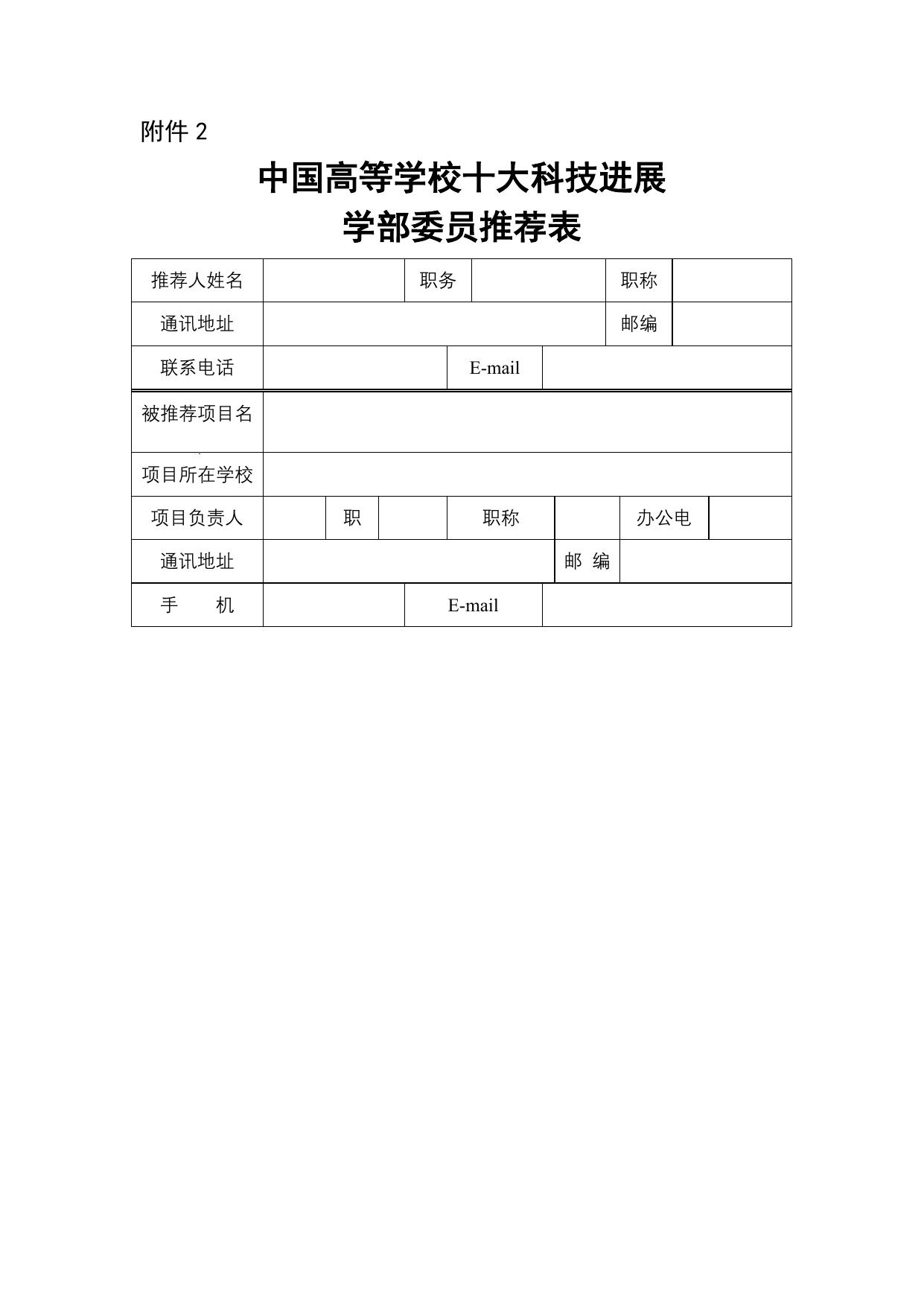 长安大学公路学院附件2.中国高等学校十大科技进展学部委员推荐表.docx