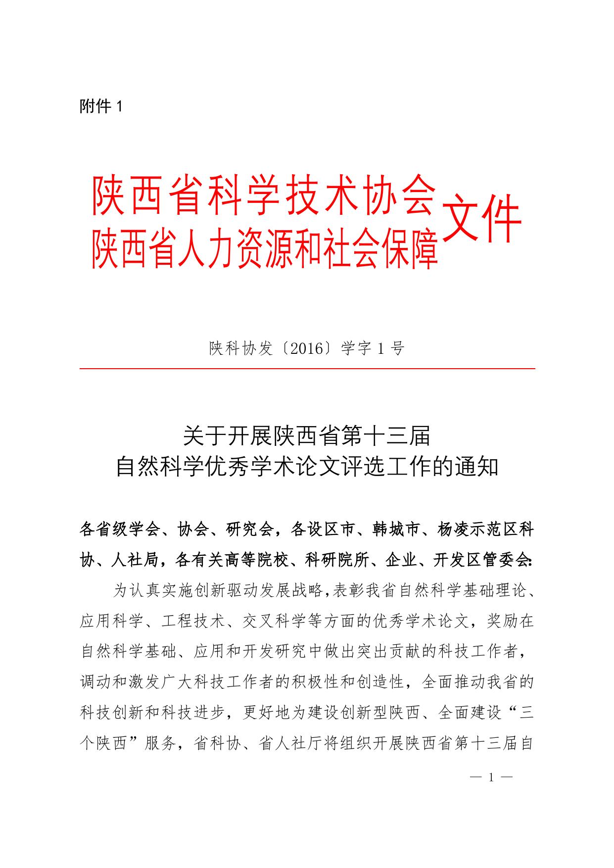 长安大学公路学院附件:关于开展陕西省第十三届自然科学论文评选通知.doc