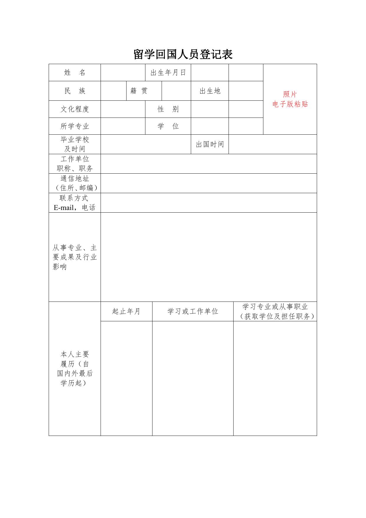 长安大学公路学院附件3 留学回国人员登记表.doc