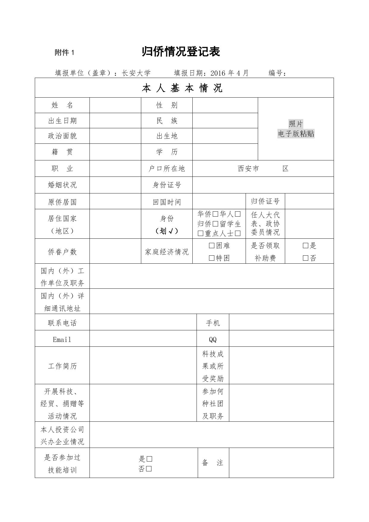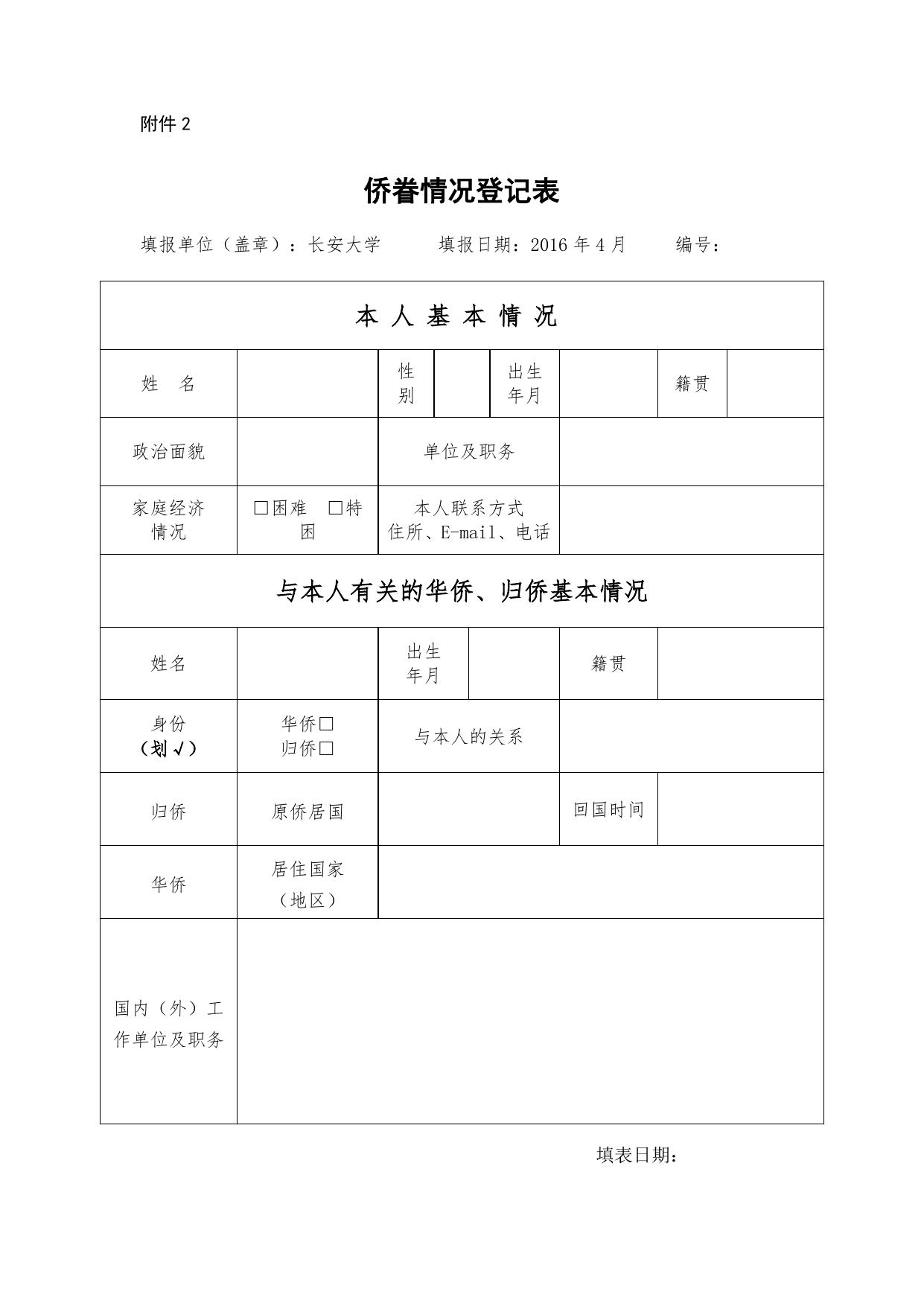长安大学公路学院附件2 侨眷情况登记表.doc