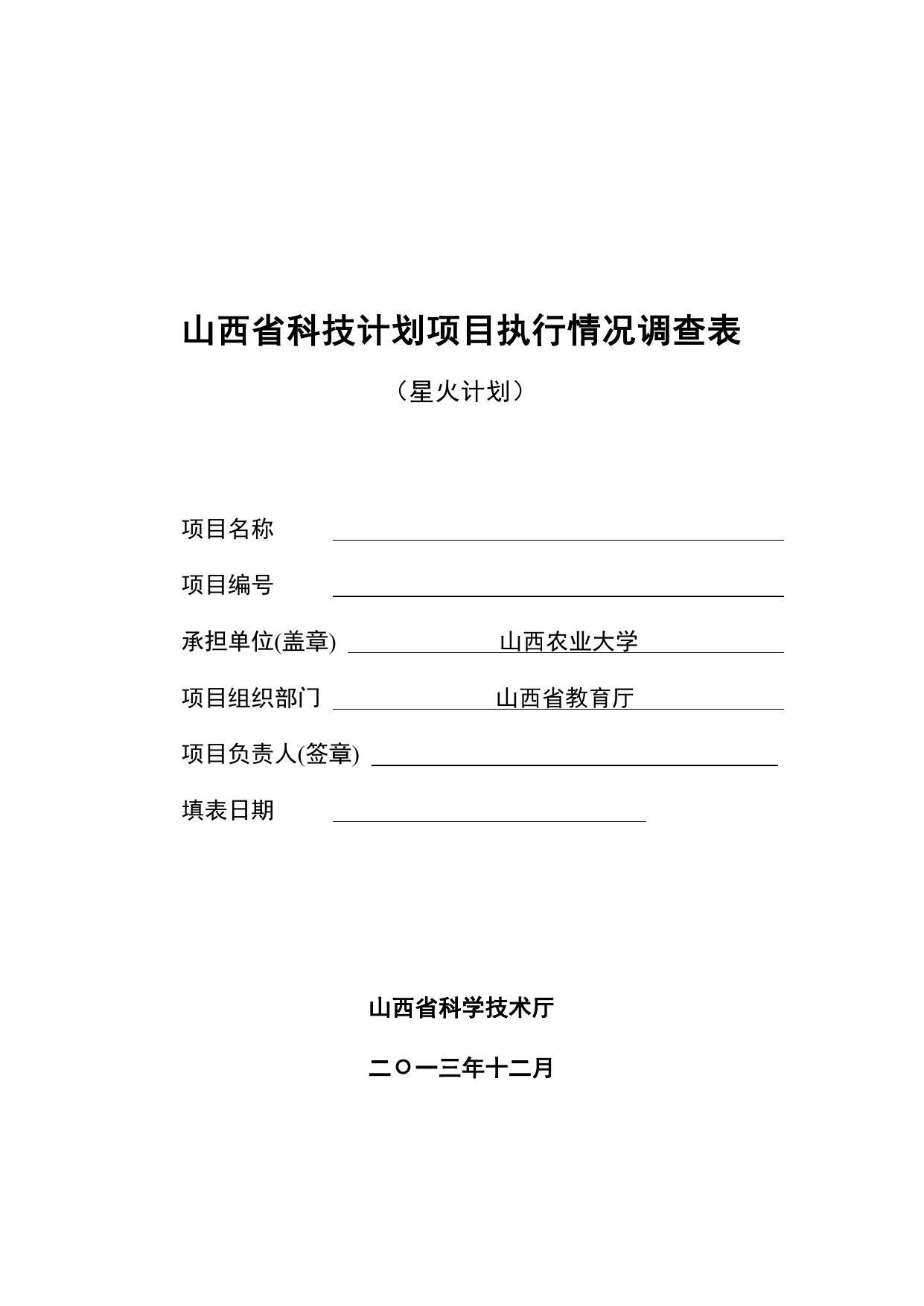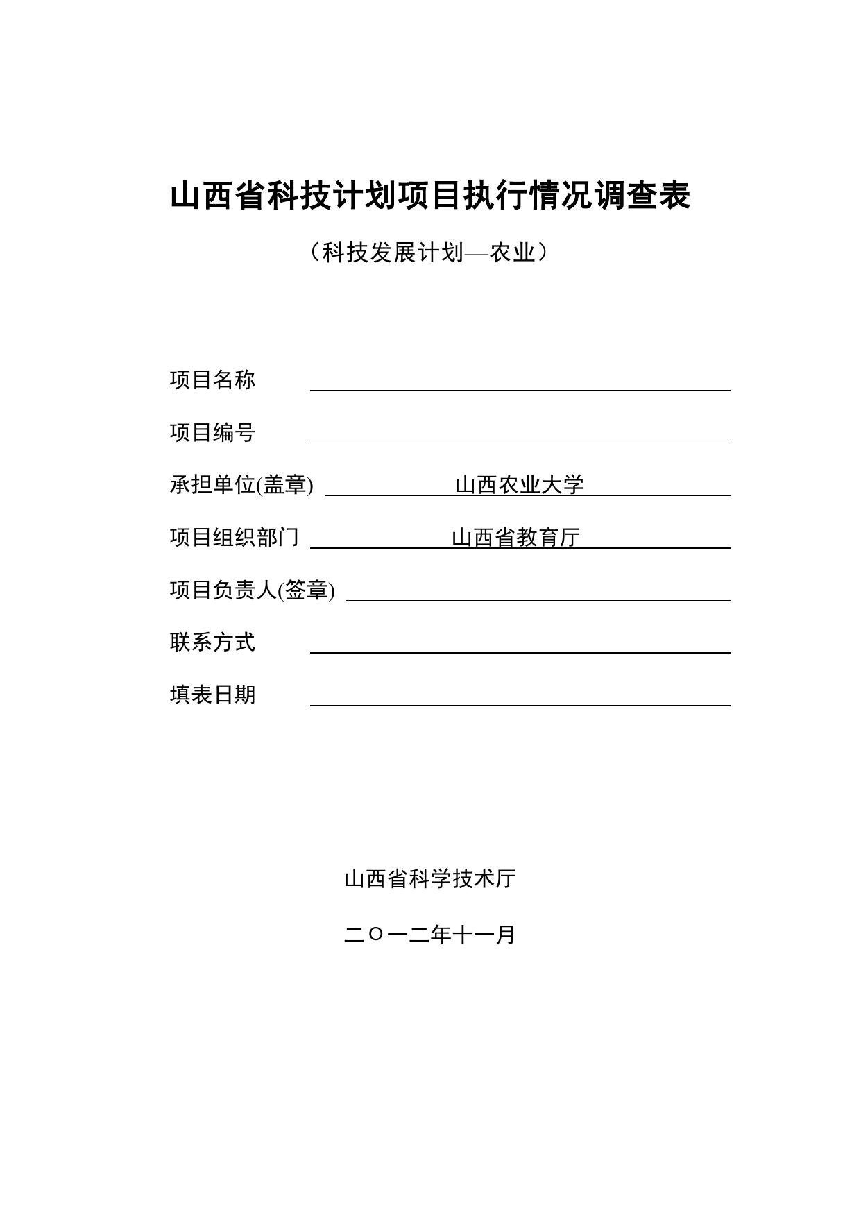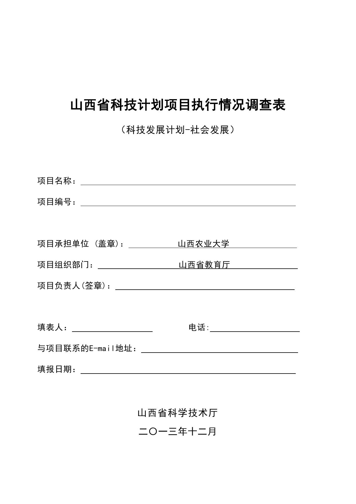 山西农业大学《山西省科技计划项目执行情况调查表》.doc