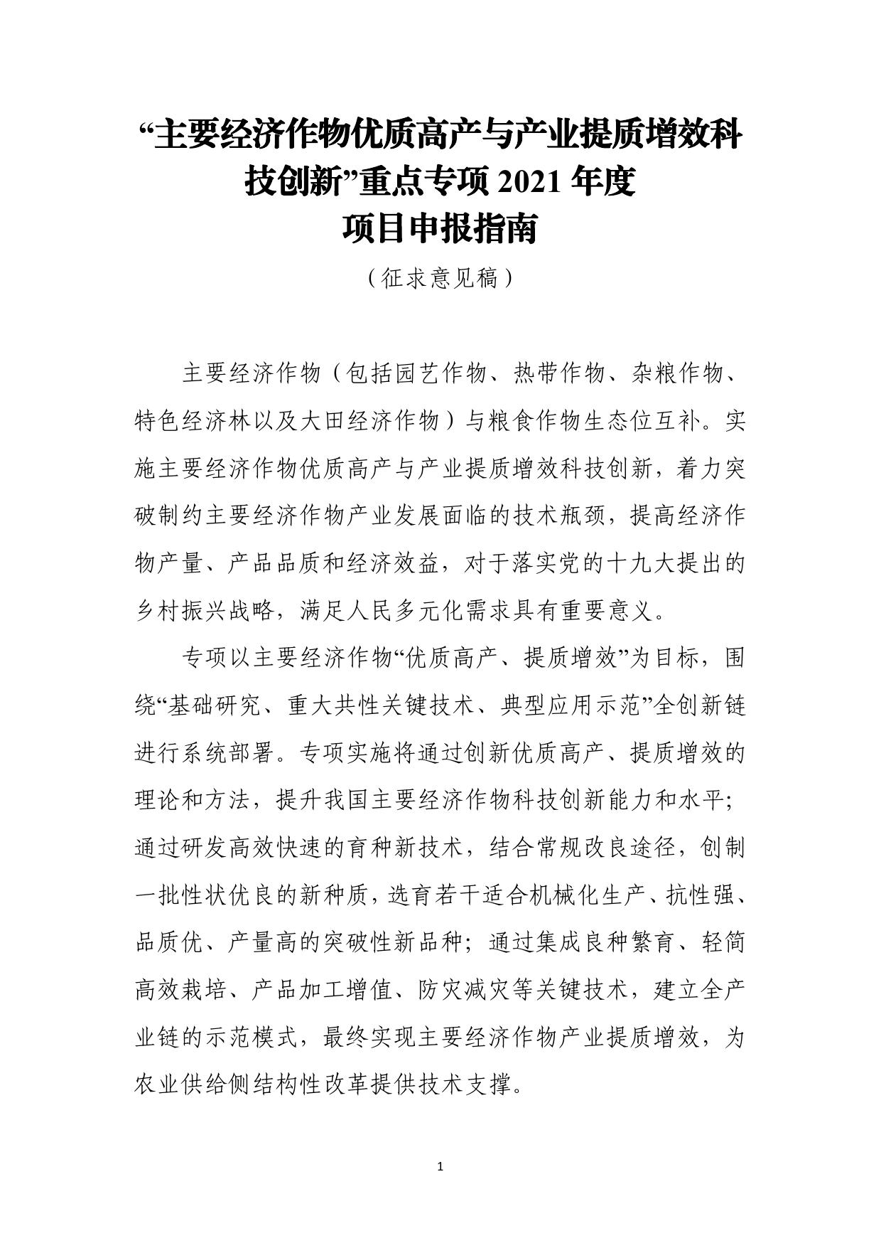 山西农业大学附件:“主要经济作物优质高产与产业提质增效科技创新”重点专项2021年度项目申报指南(征求意见稿).pdf