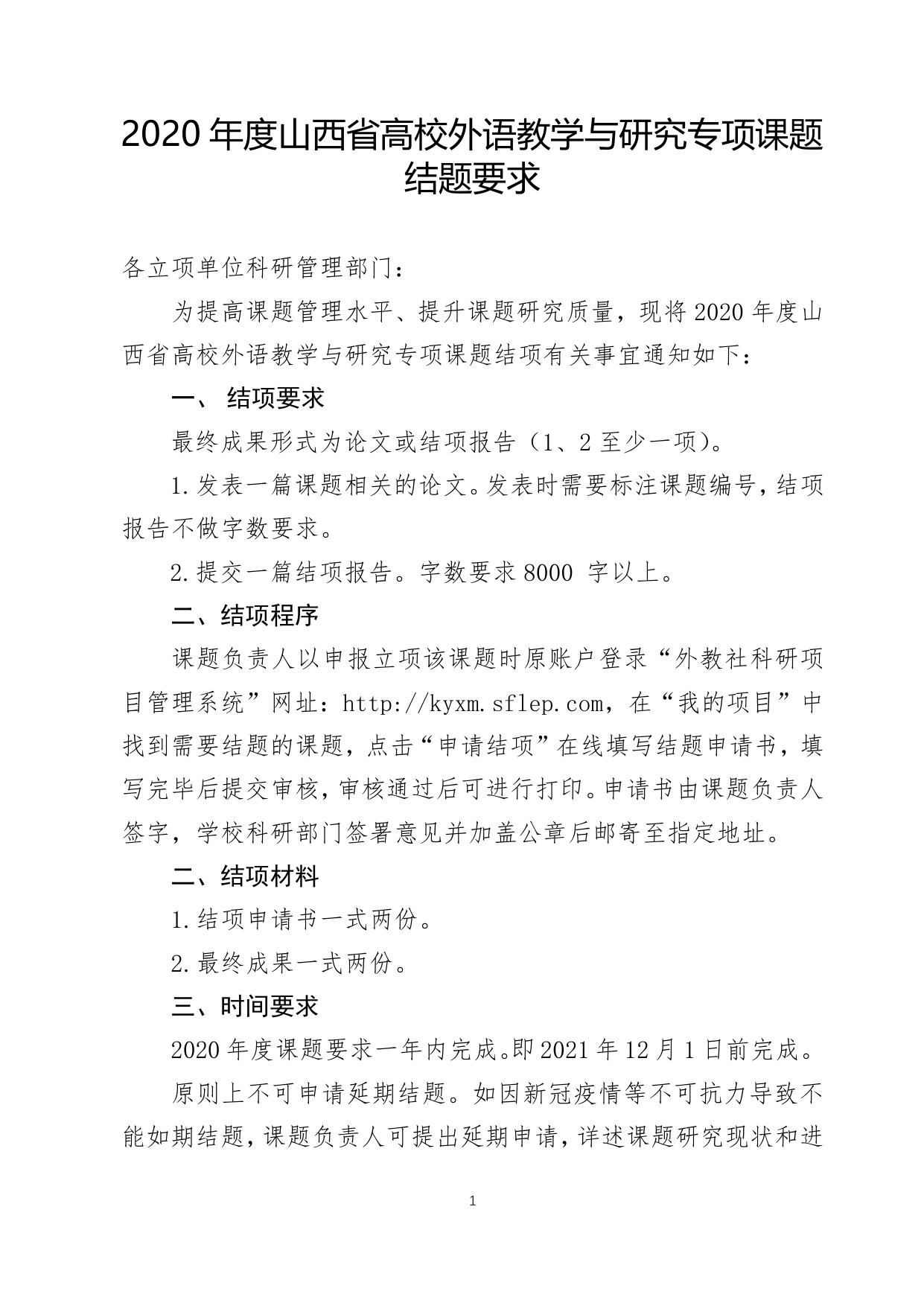 山西农业大学附件. 2020年度山西省高校外语教学与研究专项课题结题要求.pdf