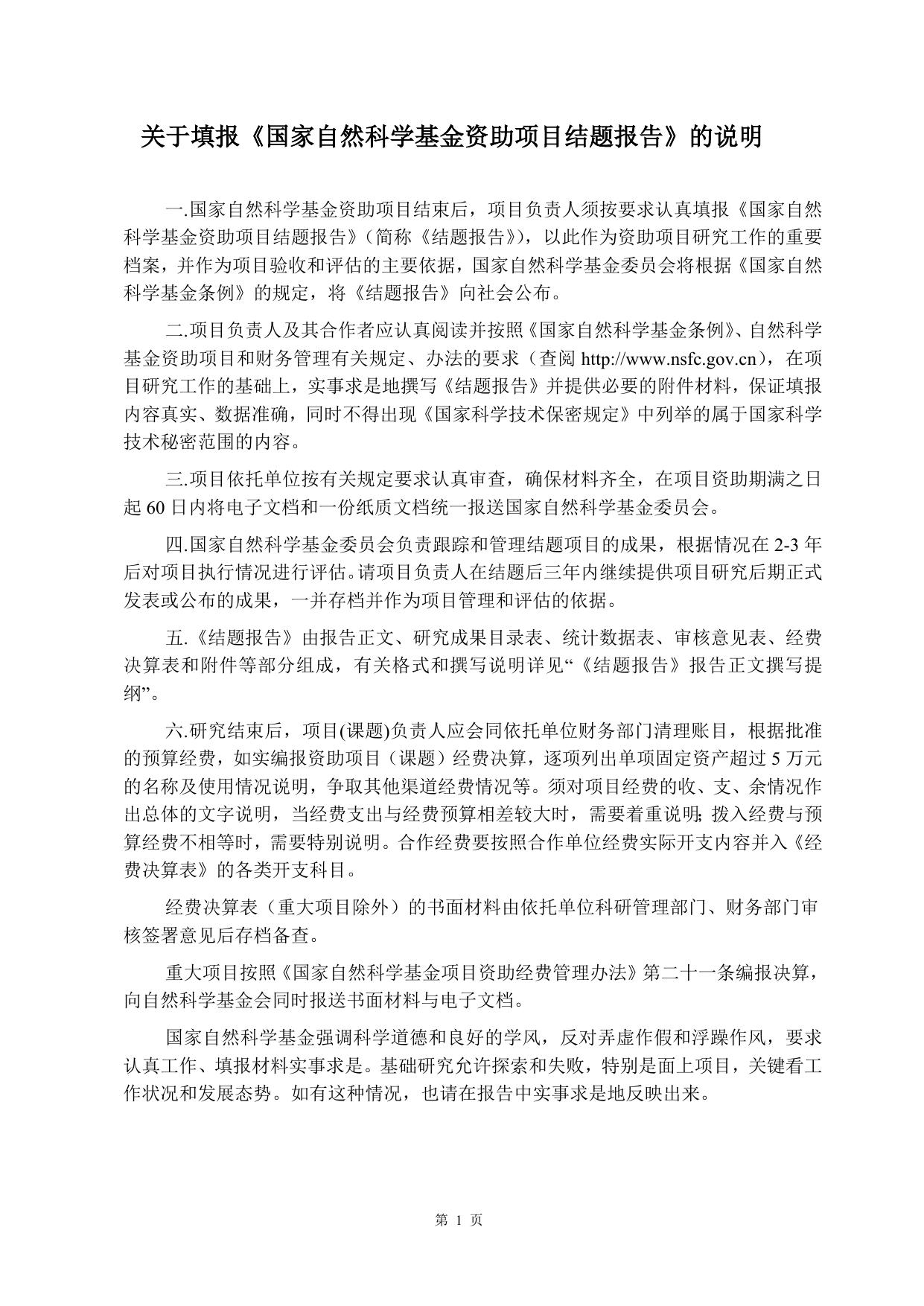 山西农业大学关于填报《国家自然科学基金资助项目结题报告》的说明F2003.doc
