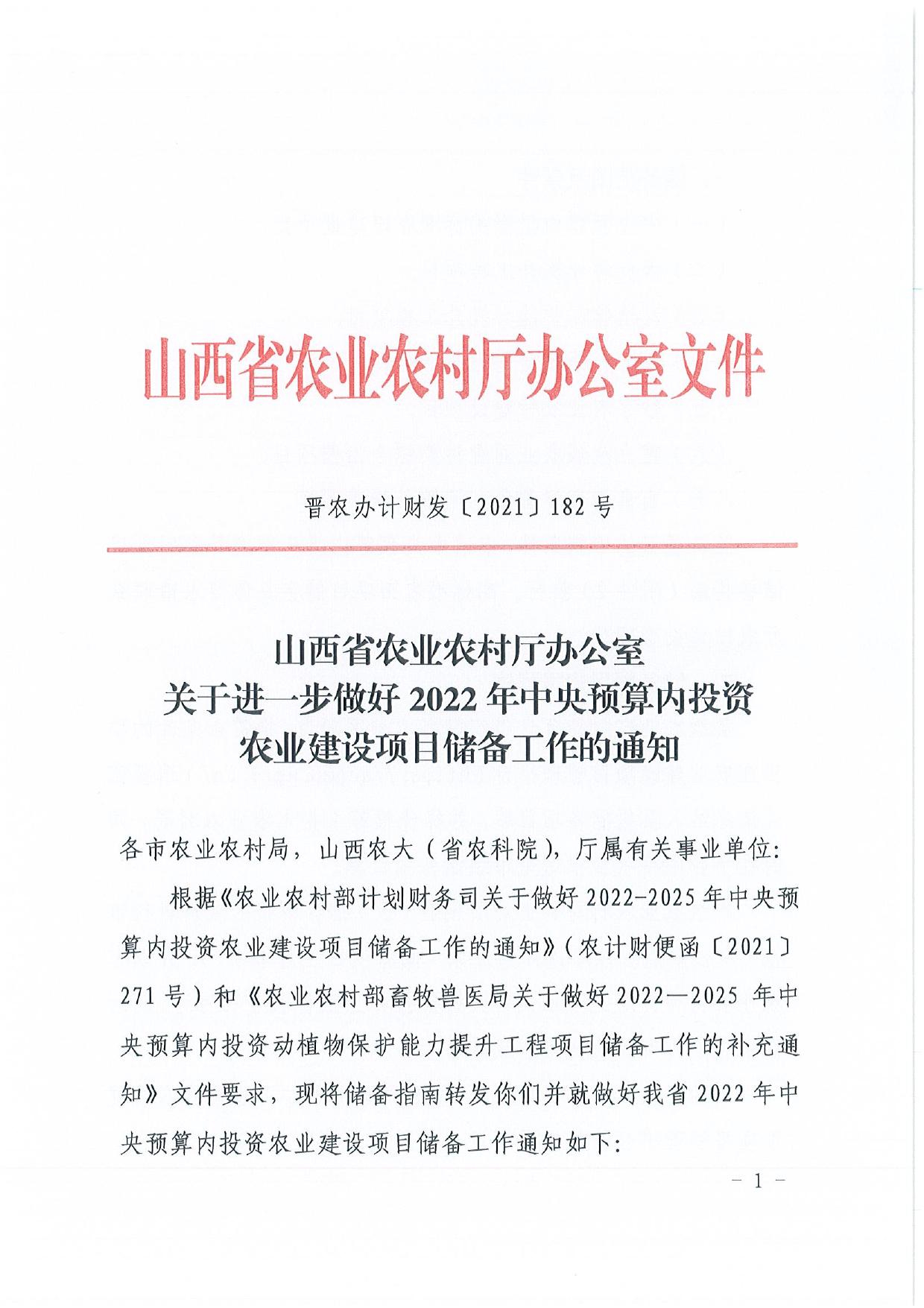 山西农业大学附件1:山西省农业农村厅办公室关于进一步做好2022年中央预算内投资农业建设项目储备工作的通知.pdf