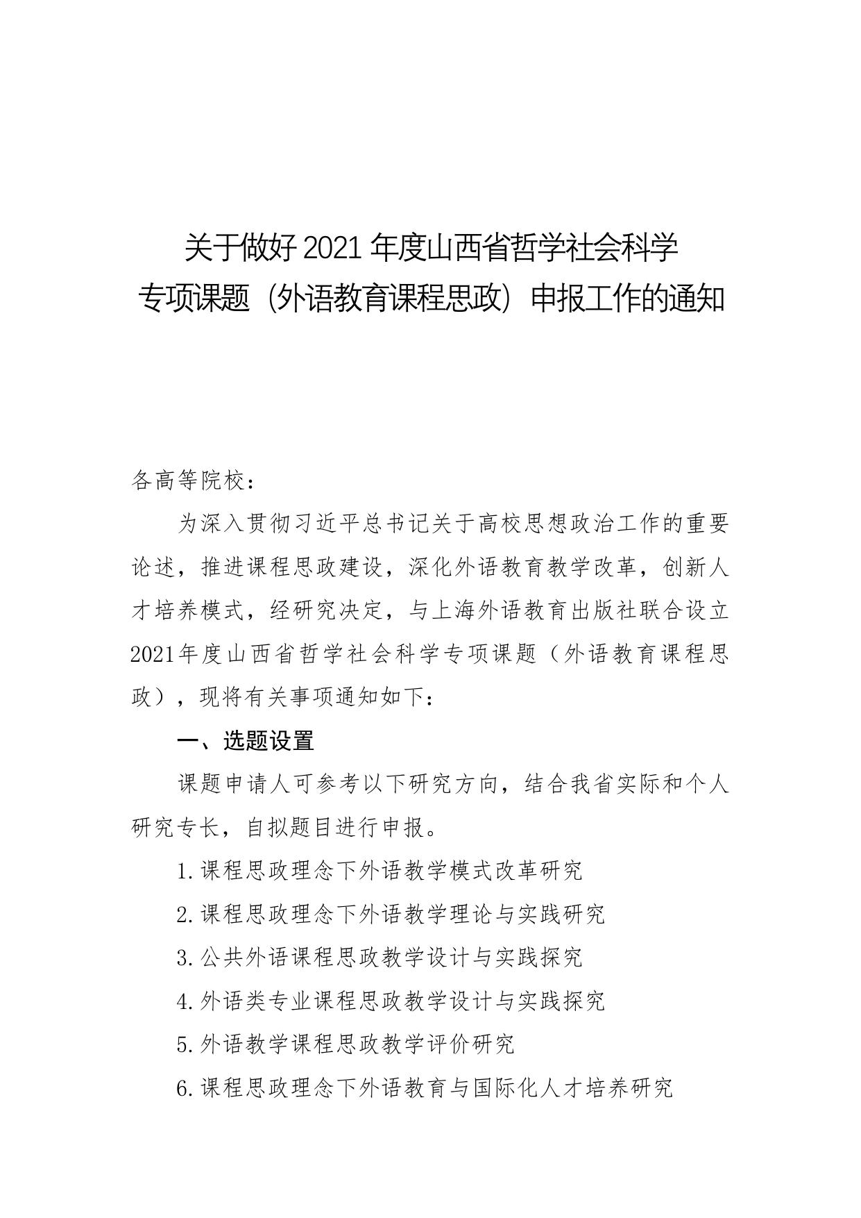 山西农业大学附件1.关于做好2021年度山西省哲学社会科学专项课题(外语教育课程思政)申报工作的通知.doc