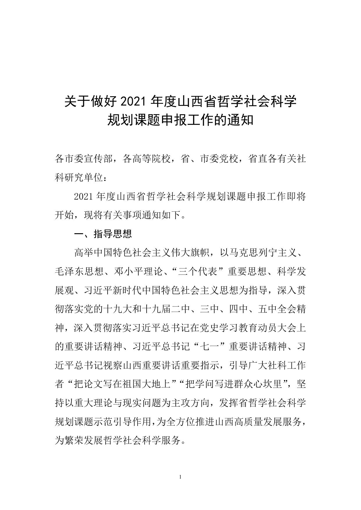 山西农业大学附件1.关于做好2021年度山西省哲学社会科学规划课题申报工作的通知.doc