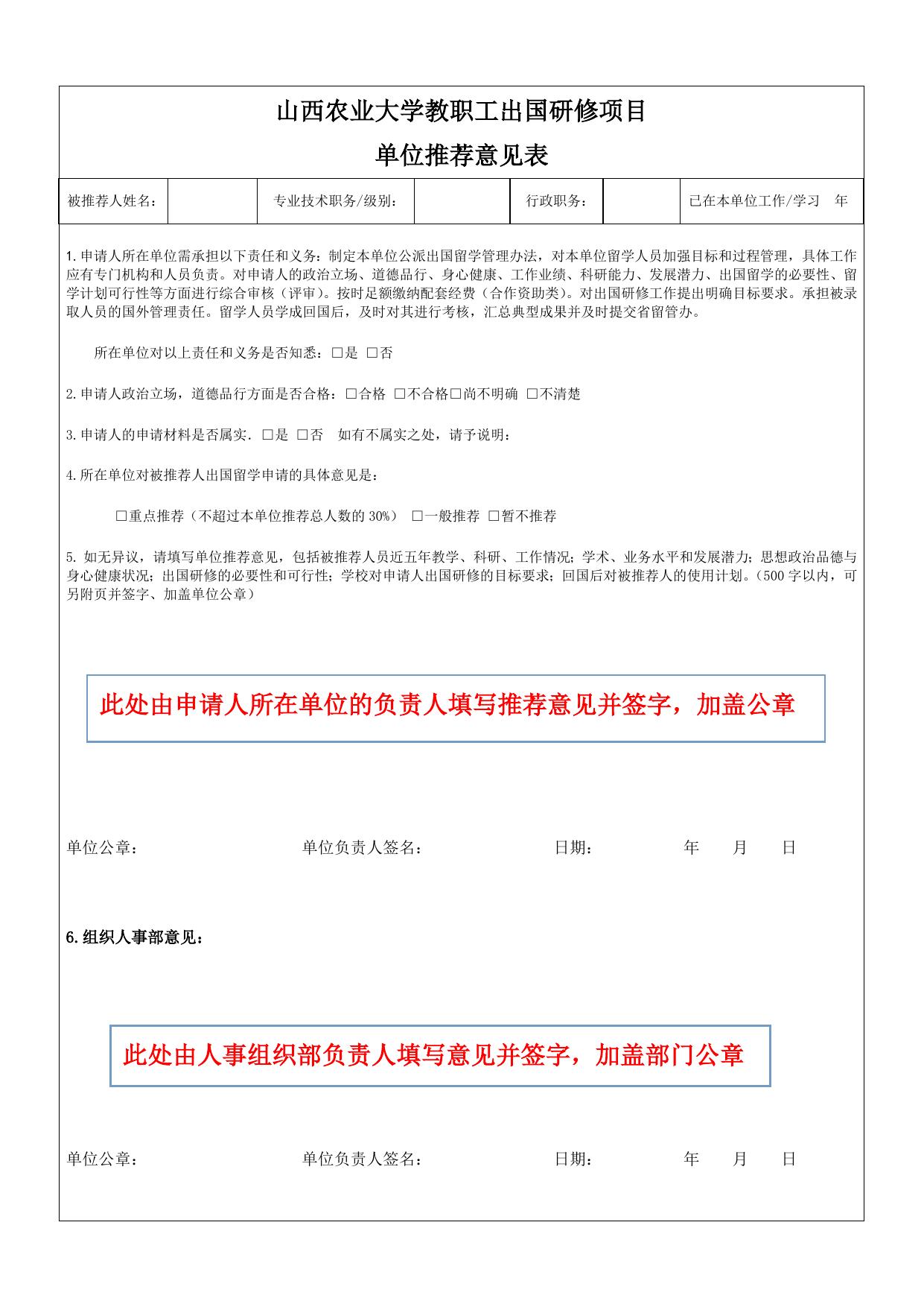 山西农业大学附件3 山西农业大学教职工出国研修项目单位推荐意见表.doc