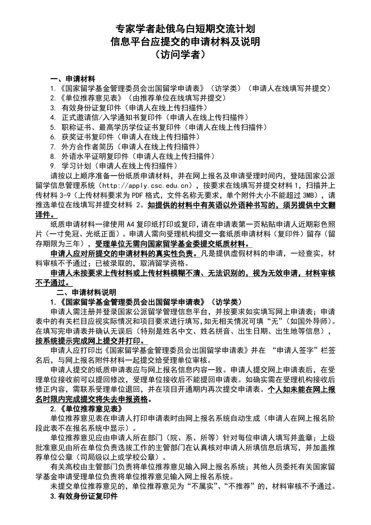 山西农业大学附件2 专家学者赴俄乌白短期交流计划信息平台应提交的申请材料及说明(访问学者).pdf