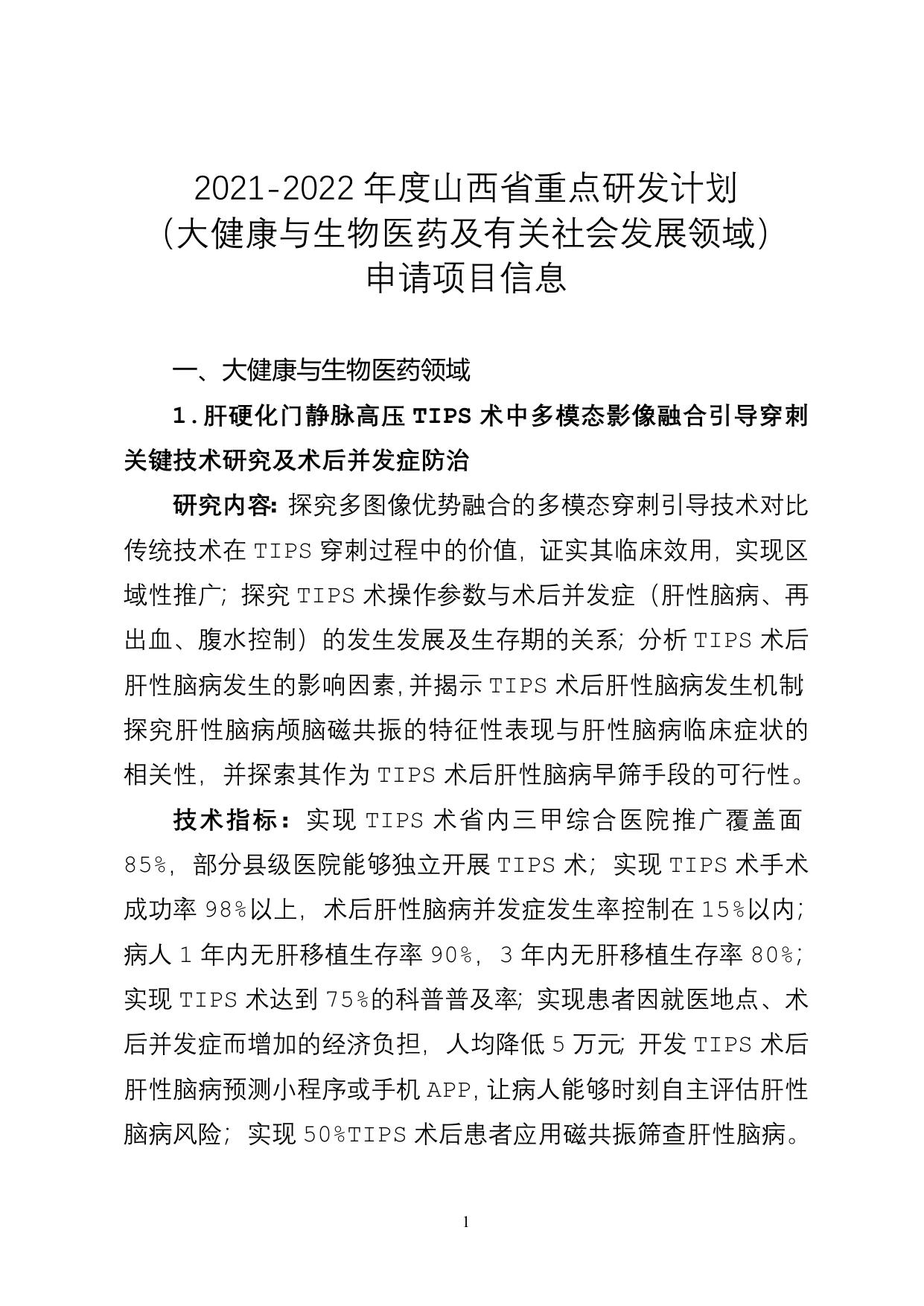 山西农业大学2021-2022年度山西省重点研发计划(大健康与生物医药及有关社会发展领域)申请项目信息.doc.doc