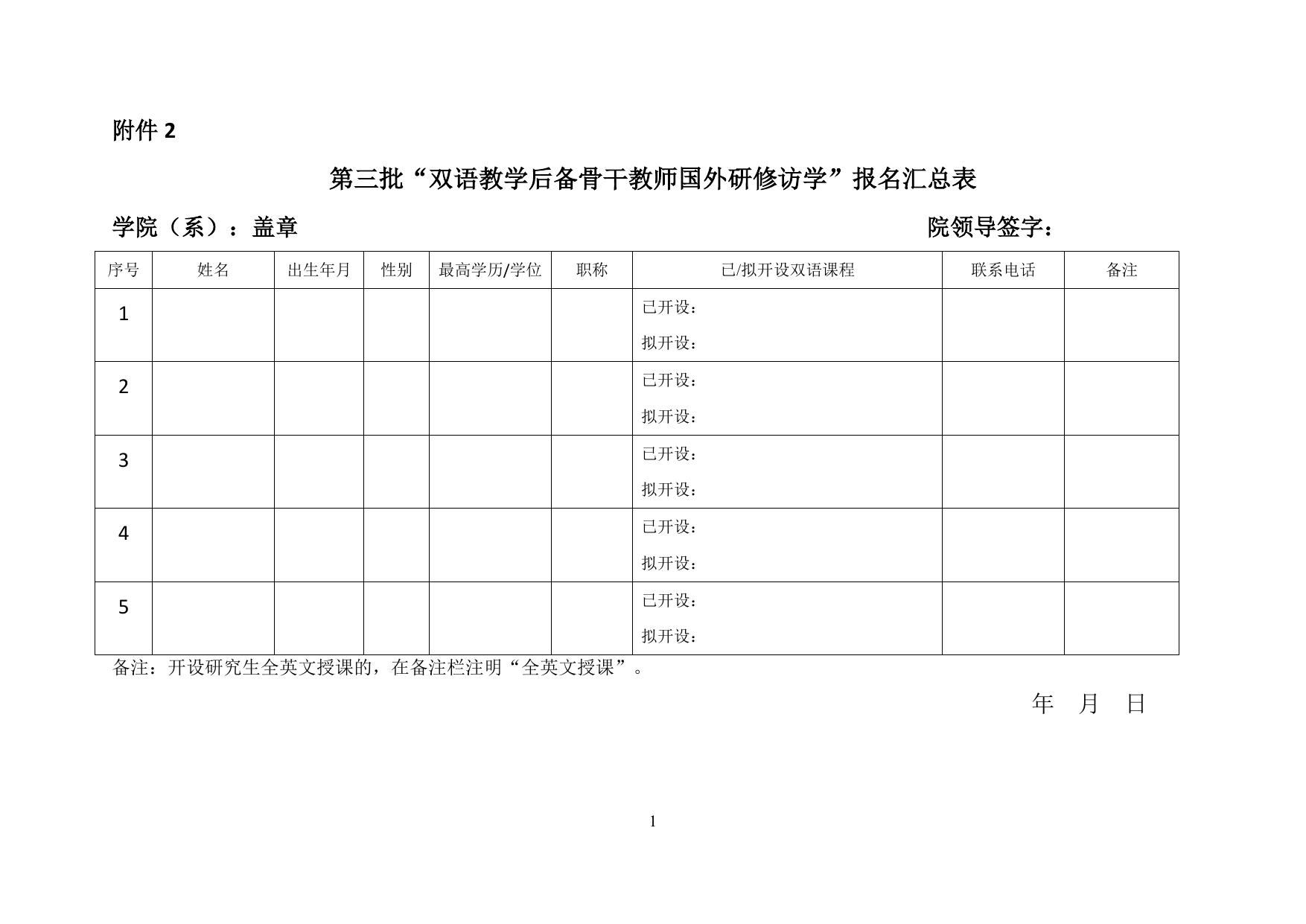长安大学公路学院附件2、“双语教学后备骨干教师国外研修访学”报名汇总表.docx