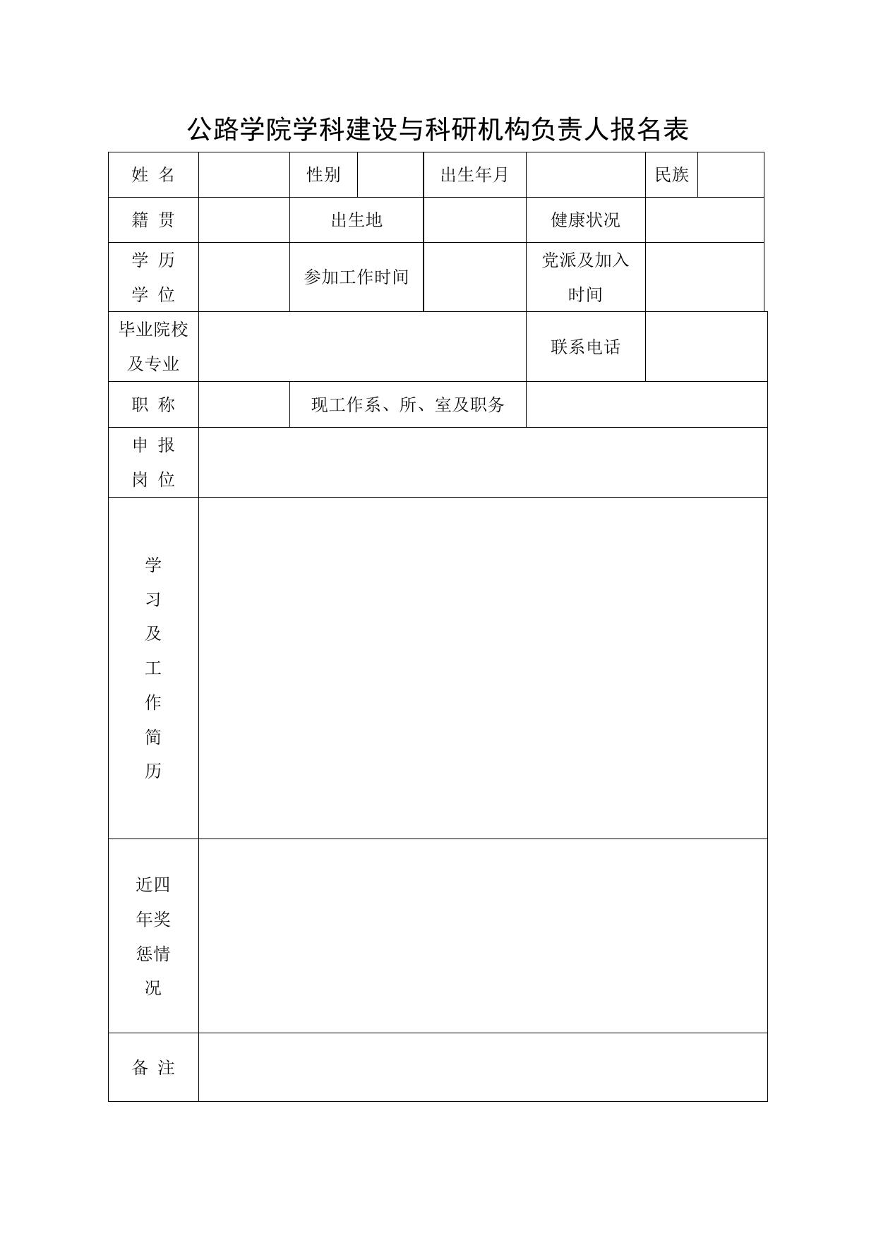 长安大学公路学院公路学院研究所负责人报名表_2016.doc