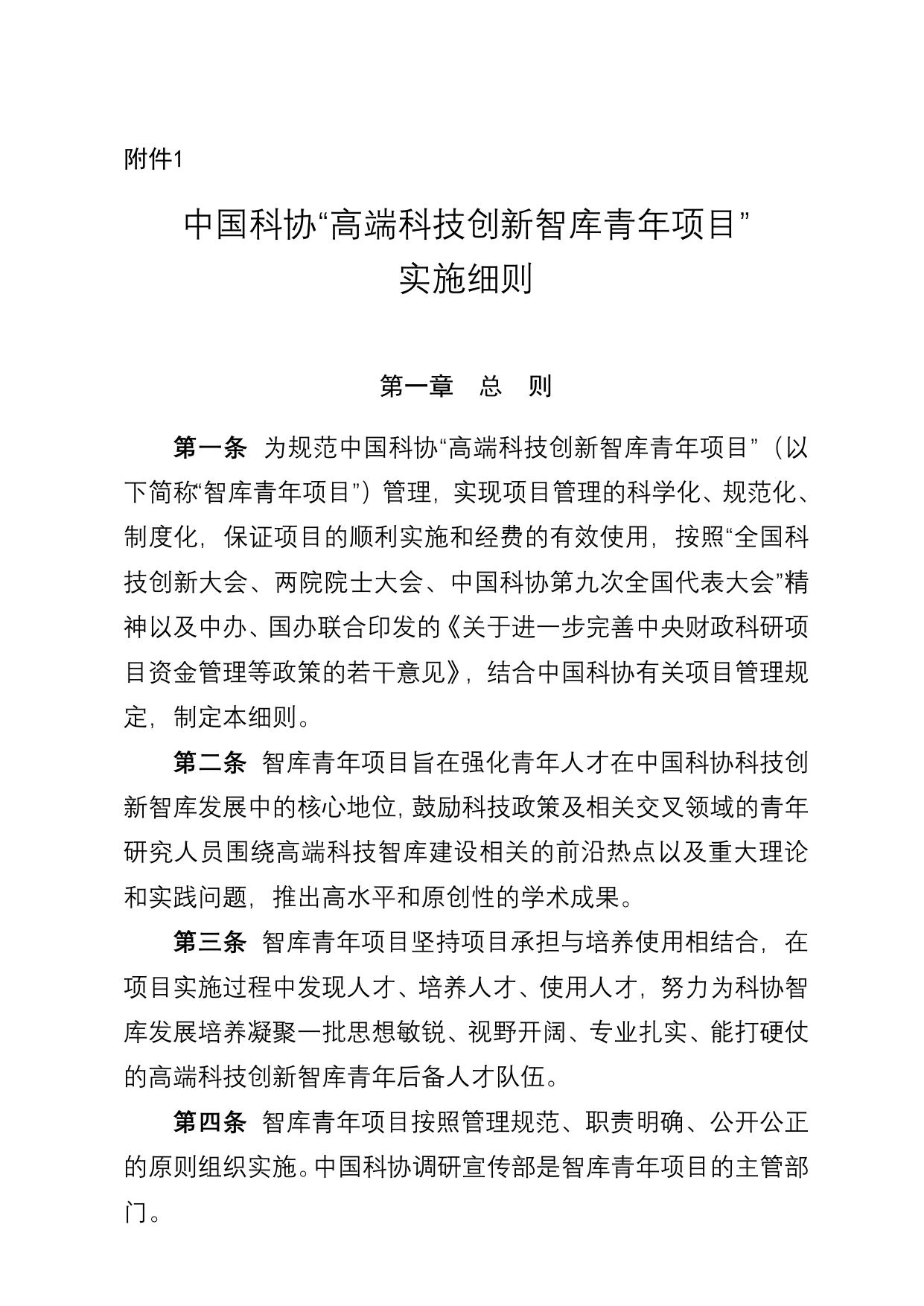 长安大学公路学院附件2 中国科协“高端科技创新智库青年项目”实施细则.doc