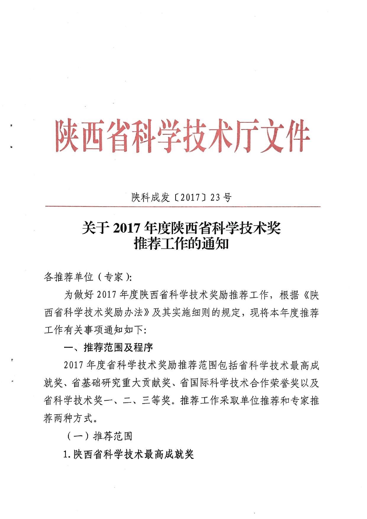 长安大学公路学院附件1 关于2017年度陕西省科学技术奖推荐工作的通知(陕西省科技厅).pdf