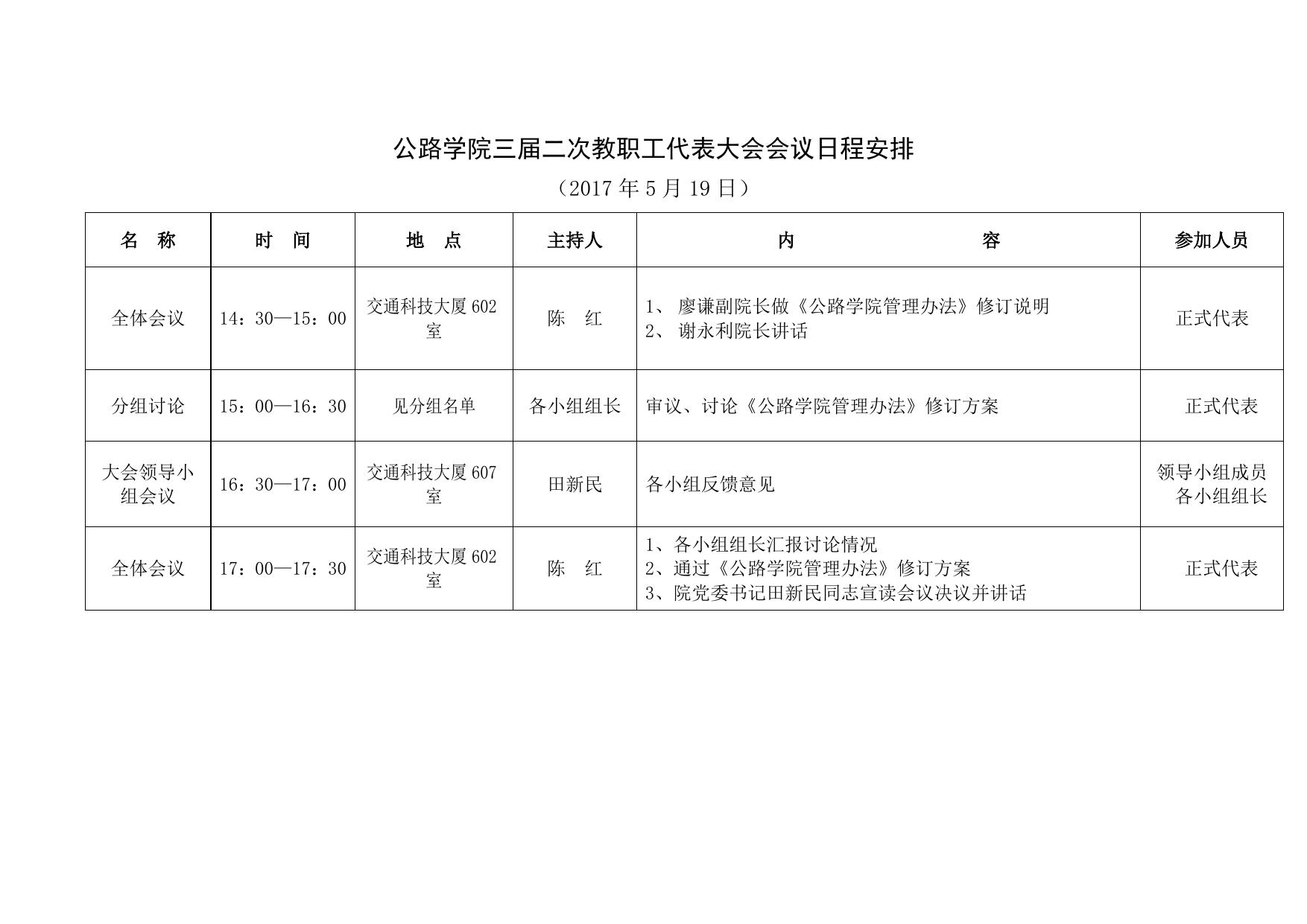 长安大学公路学院公路学院三届二次教职工代表大会会议日程安排.doc