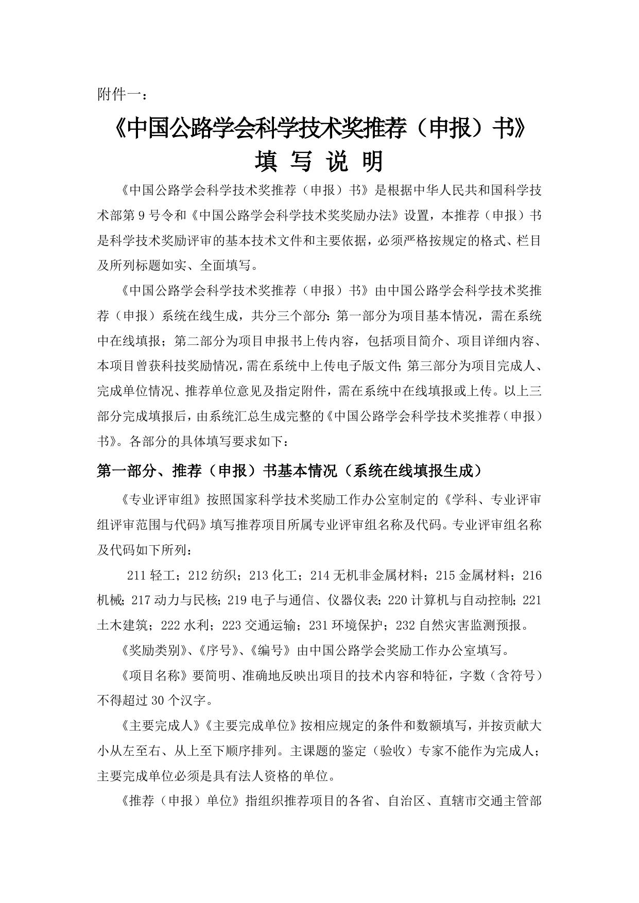 长安大学公路学院附件一 中国公路学会科学技术奖推荐(申报)书填写说明.doc