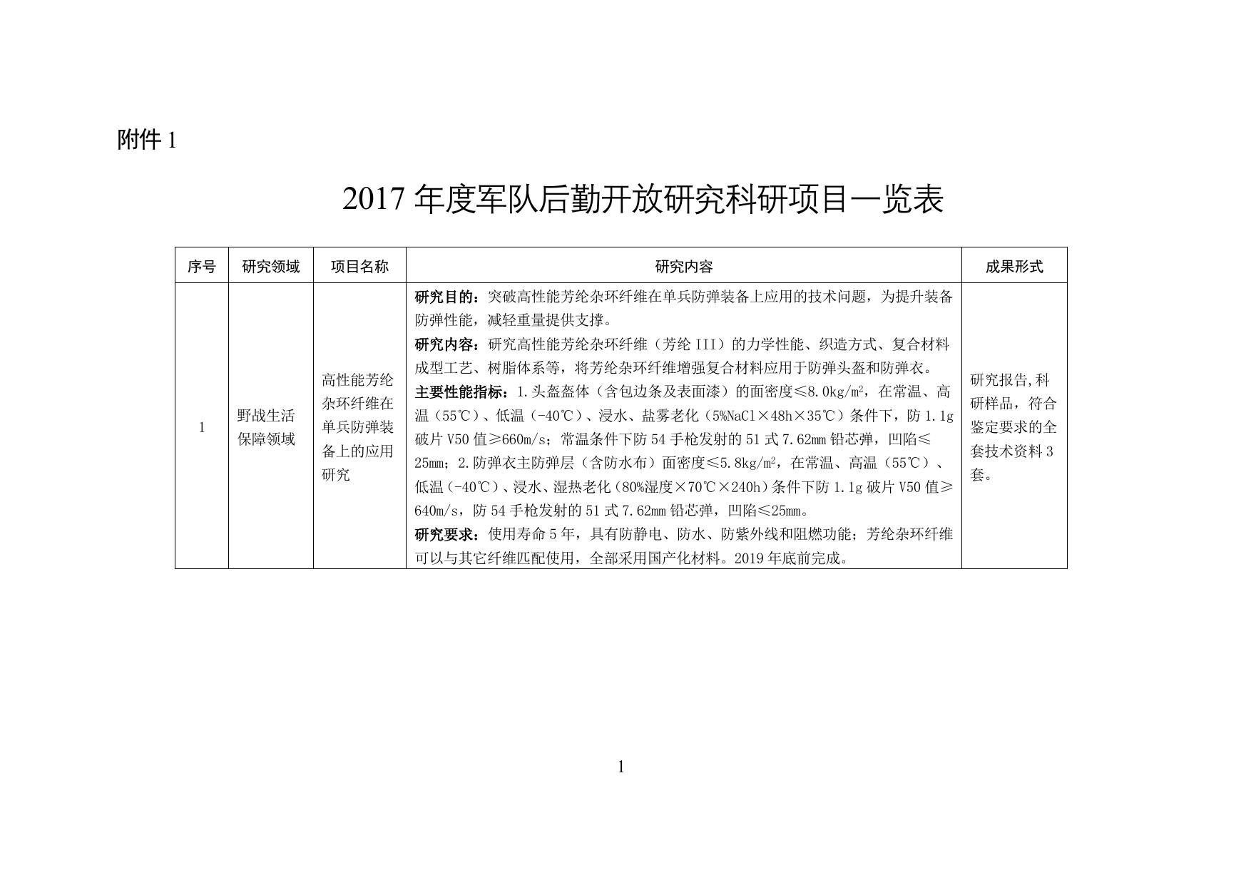 长安大学公路学院附件1 2017年度军队后勤开放研究科研项目一览表.doc