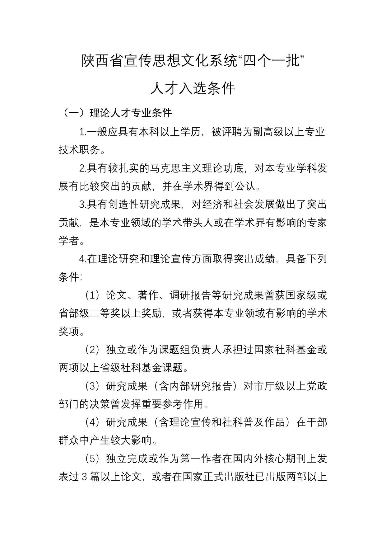 附件1:陕西省宣传思想文化系统“四个一批”人才入选条件.doc