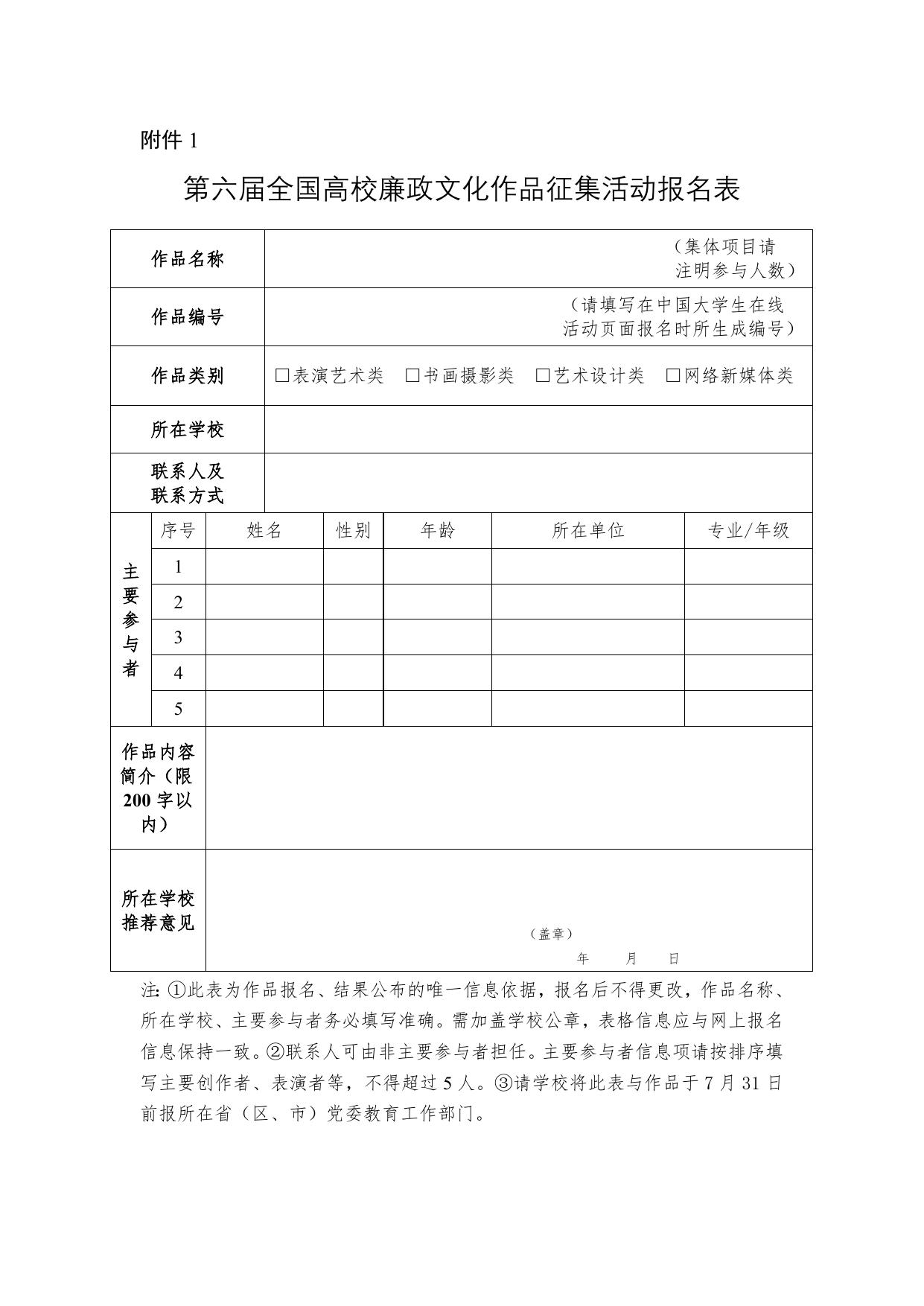 附件1:第六届全国高校廉政文化作品征集活动报名表.docx
