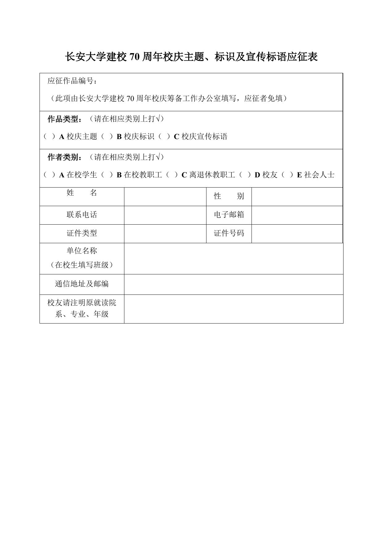 长安大学建校70周年校庆主题、标识及宣传标语应征表.docx